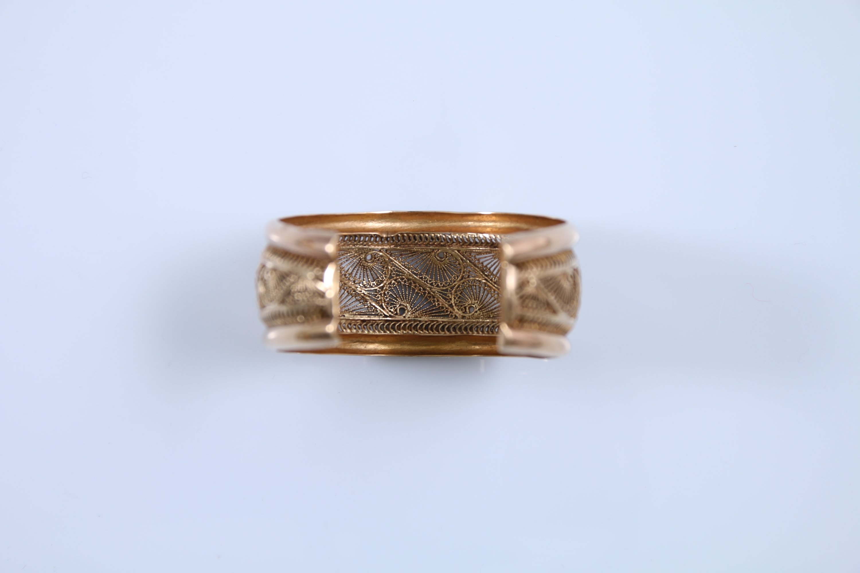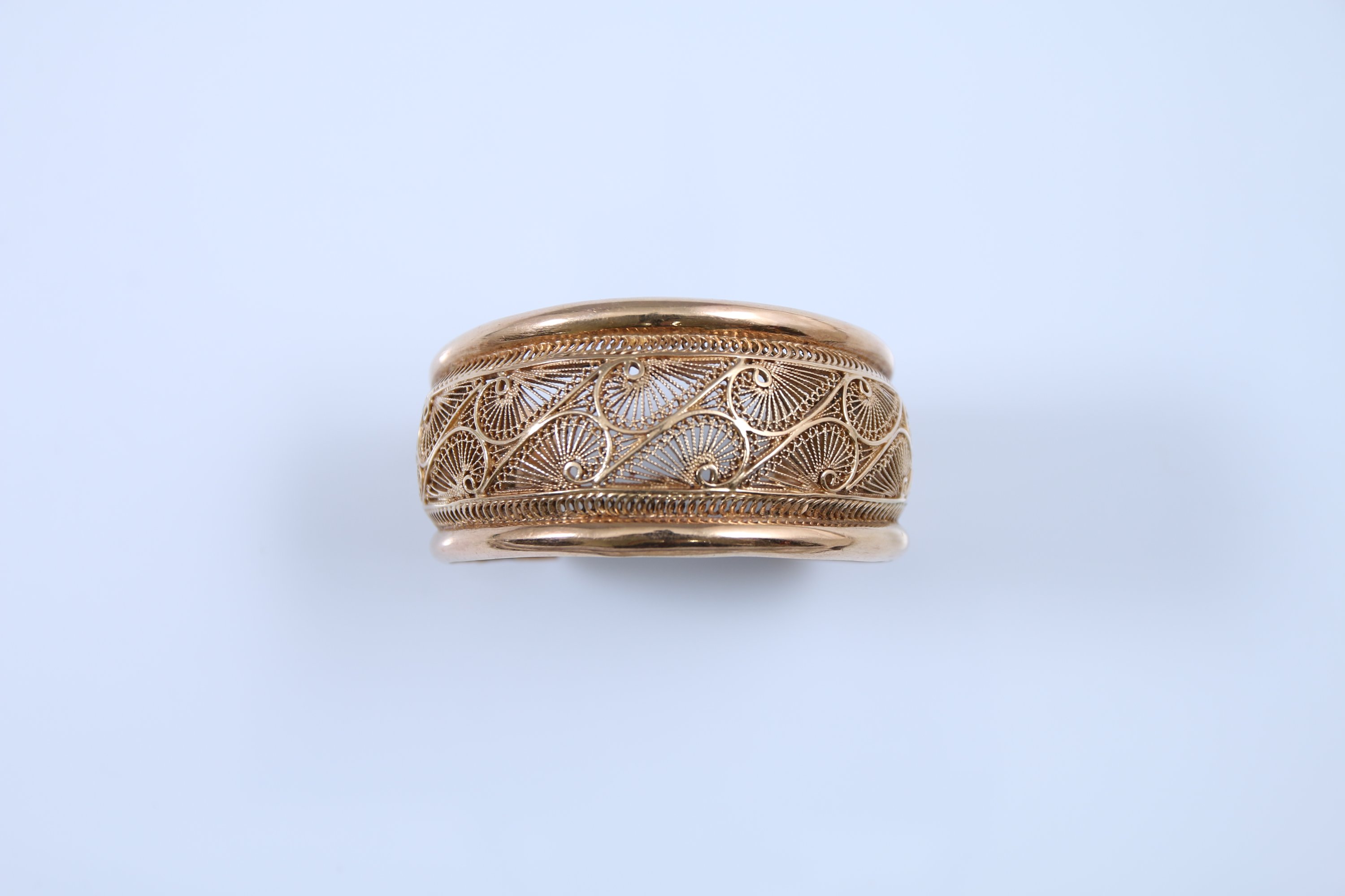Or jaune 585 millièmes finement réticulé de motifs d'enroulements.