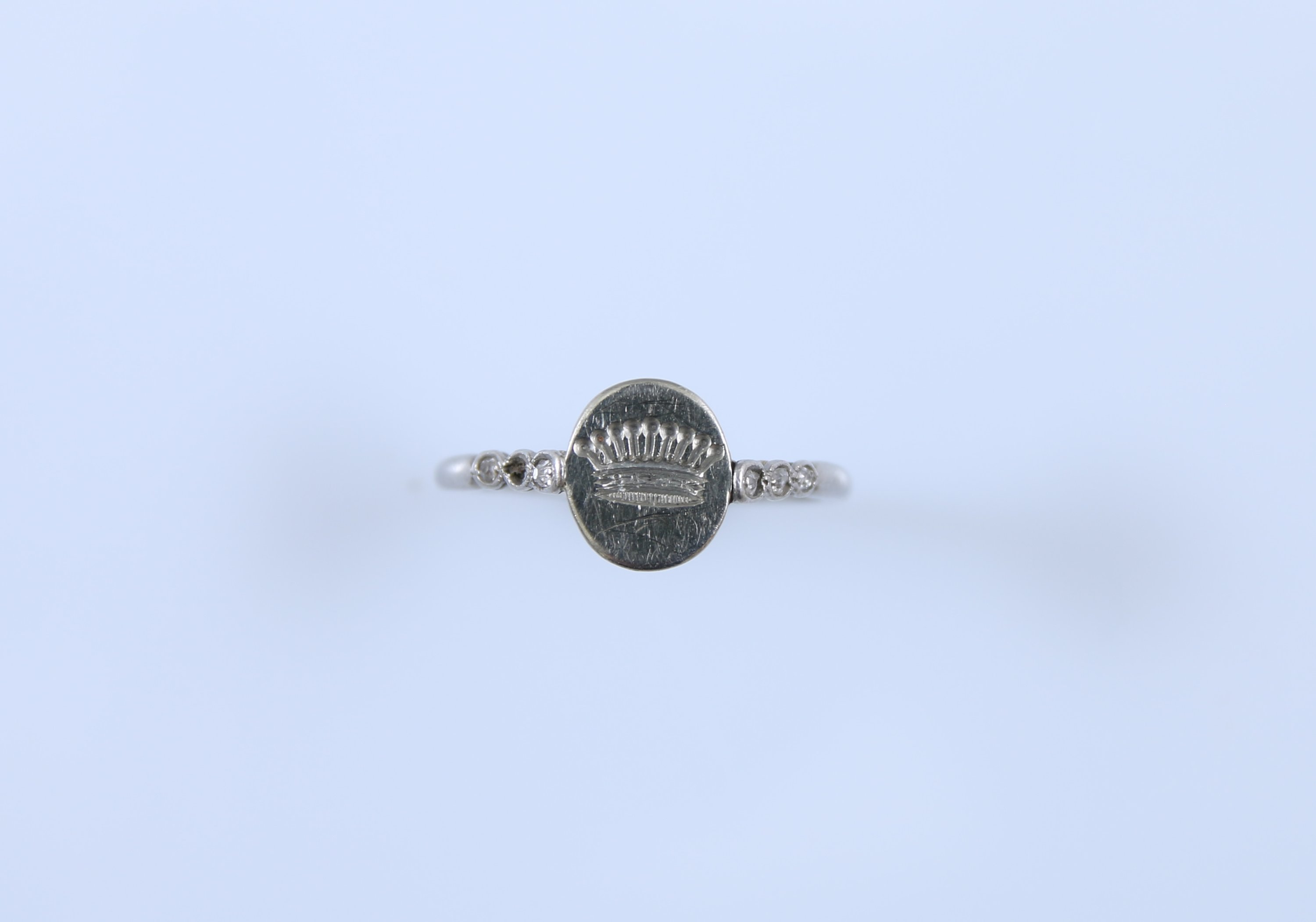 Platine, à chaton à décor d'une couronne comtale épaulée de pierres blanches.