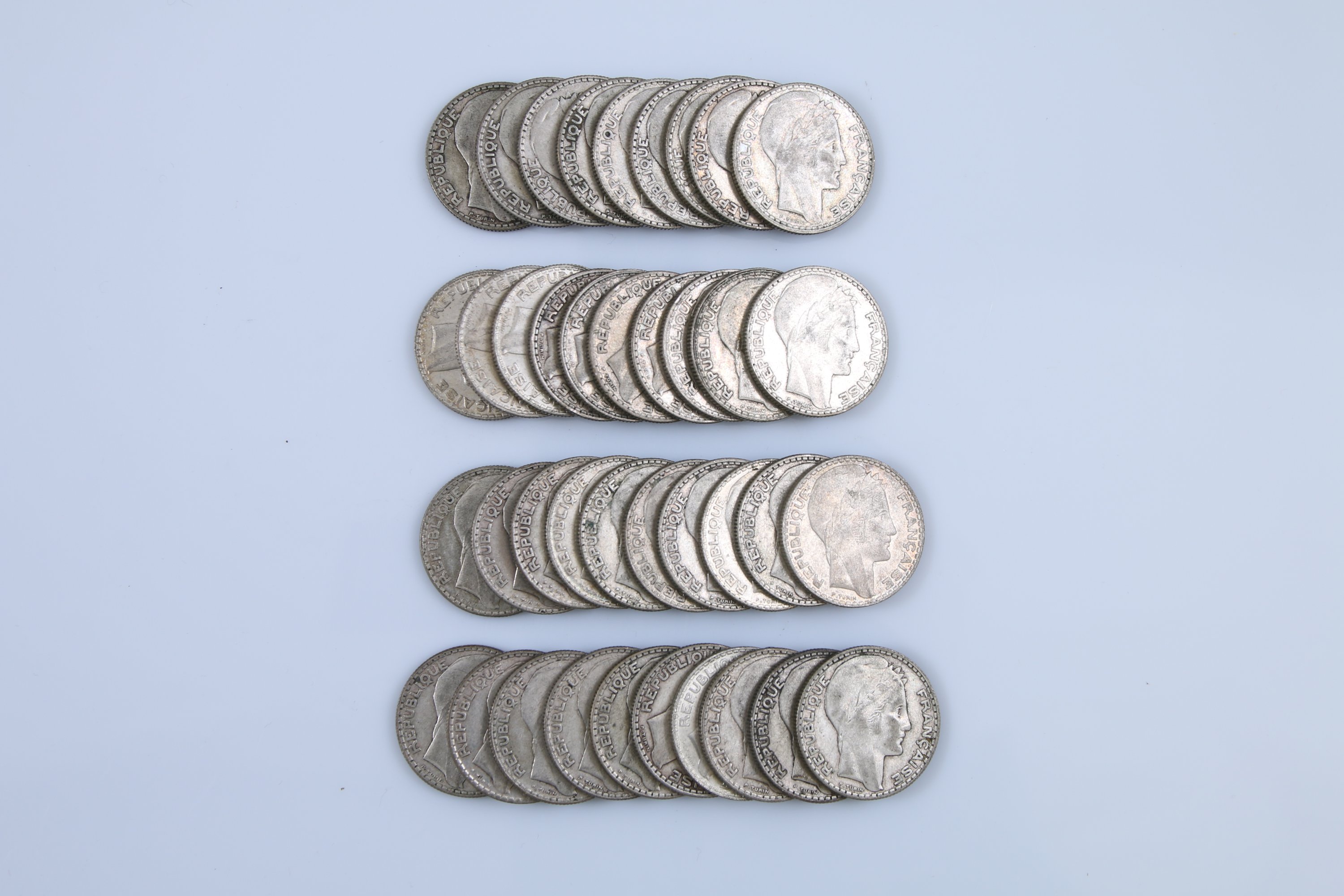 FRANCE. 39 PIECES de 10 FRANCS TURIN ARGENT. Poids: 425 g.