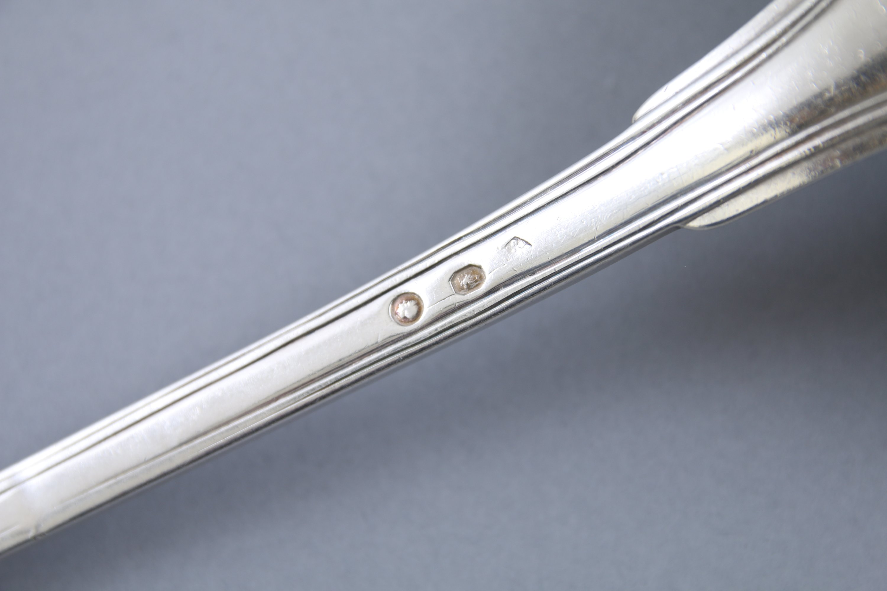 Poinçon: deuxième Coq (1809-1819). Poinçon de grosse garantie ("tête d'Alexandre"). Poinçon d'orfèvre illisible.