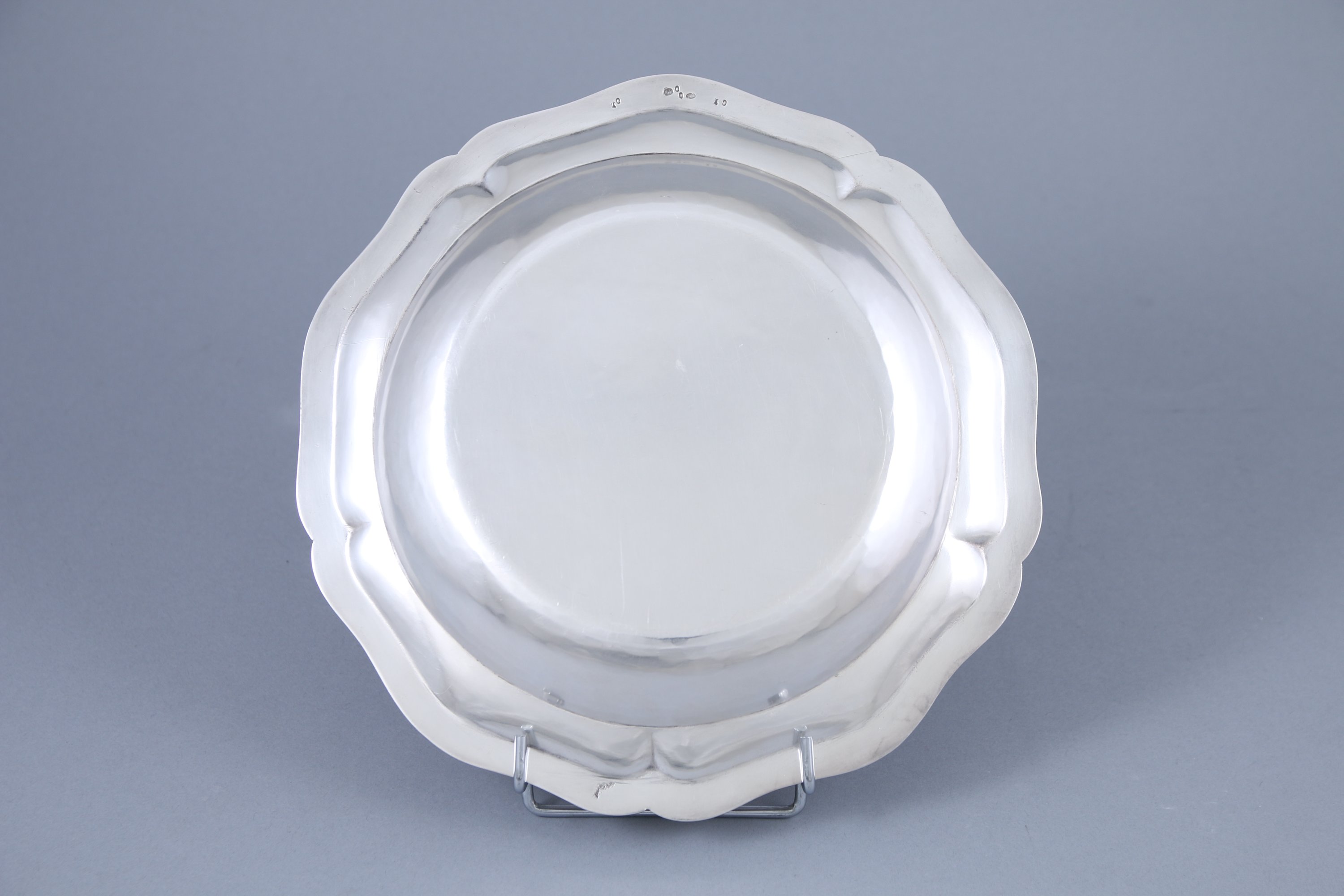 Joint: Plat en argent à batte-contour. Travail étranger. Diam. 24 cm. Poids: 550 g.