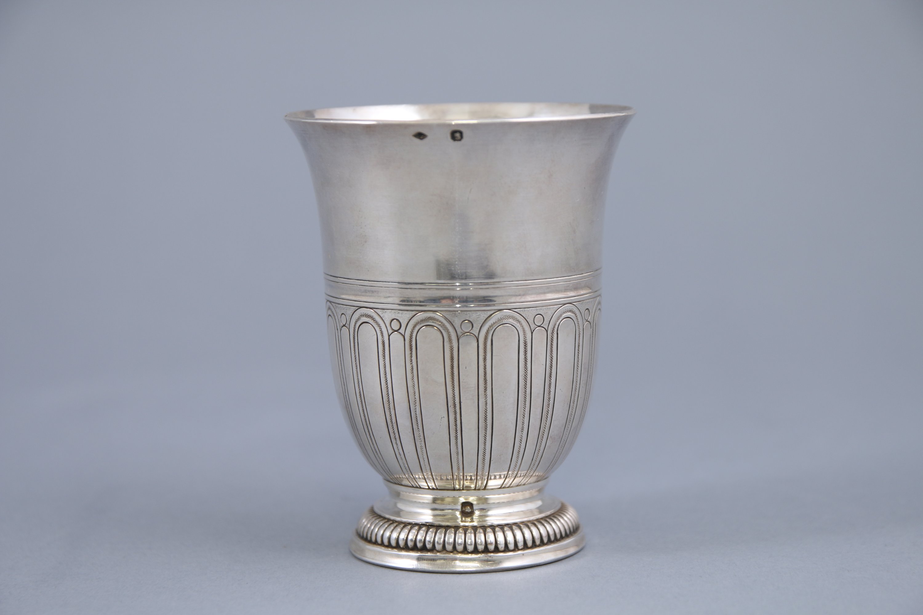 La panse à décor gravé de godrons se prolongeant en relief sur le pied circulaire. Monogrammée "FB".