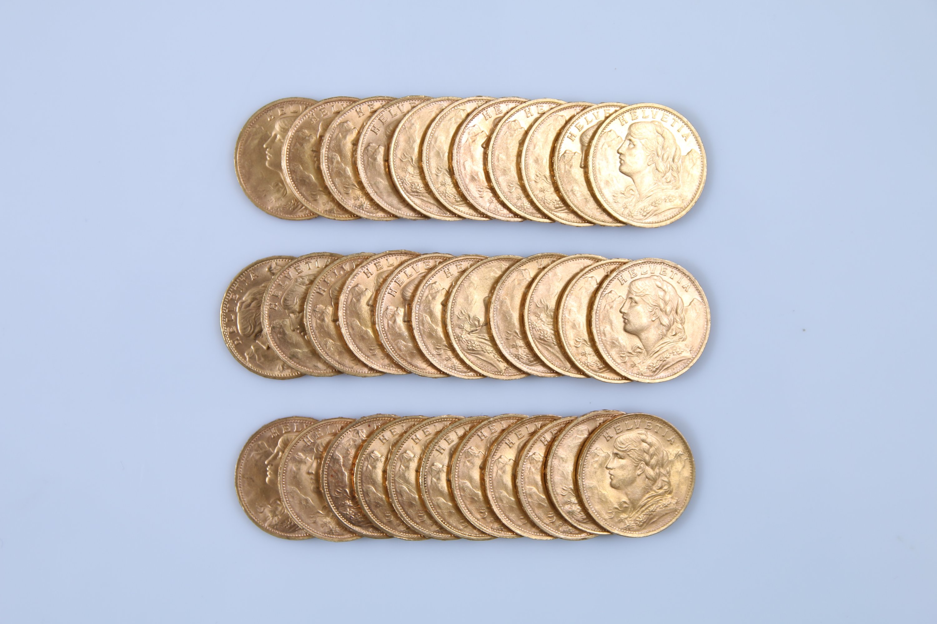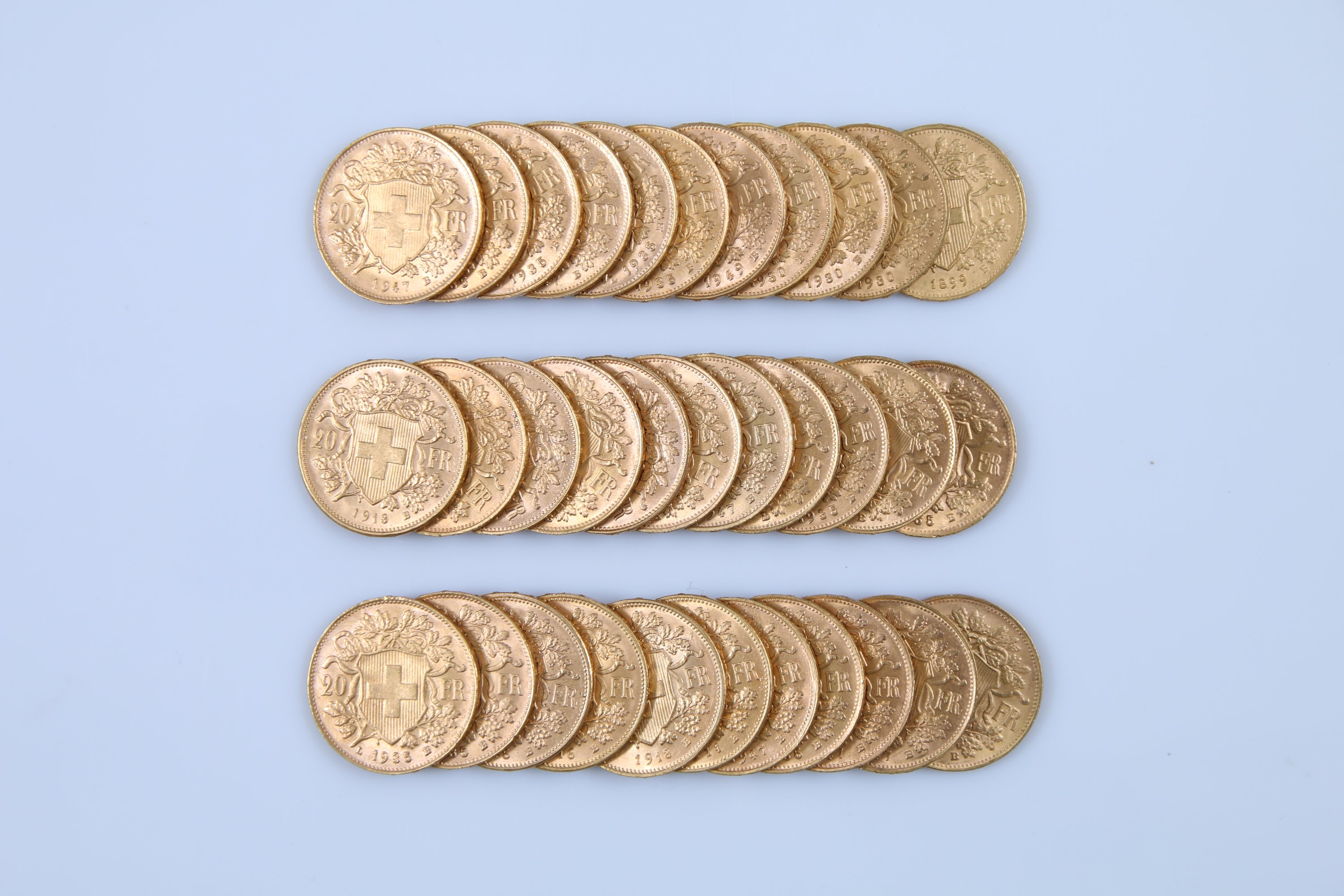 SUISSE. 33 PIÈCES de 20 FRANCS OR: