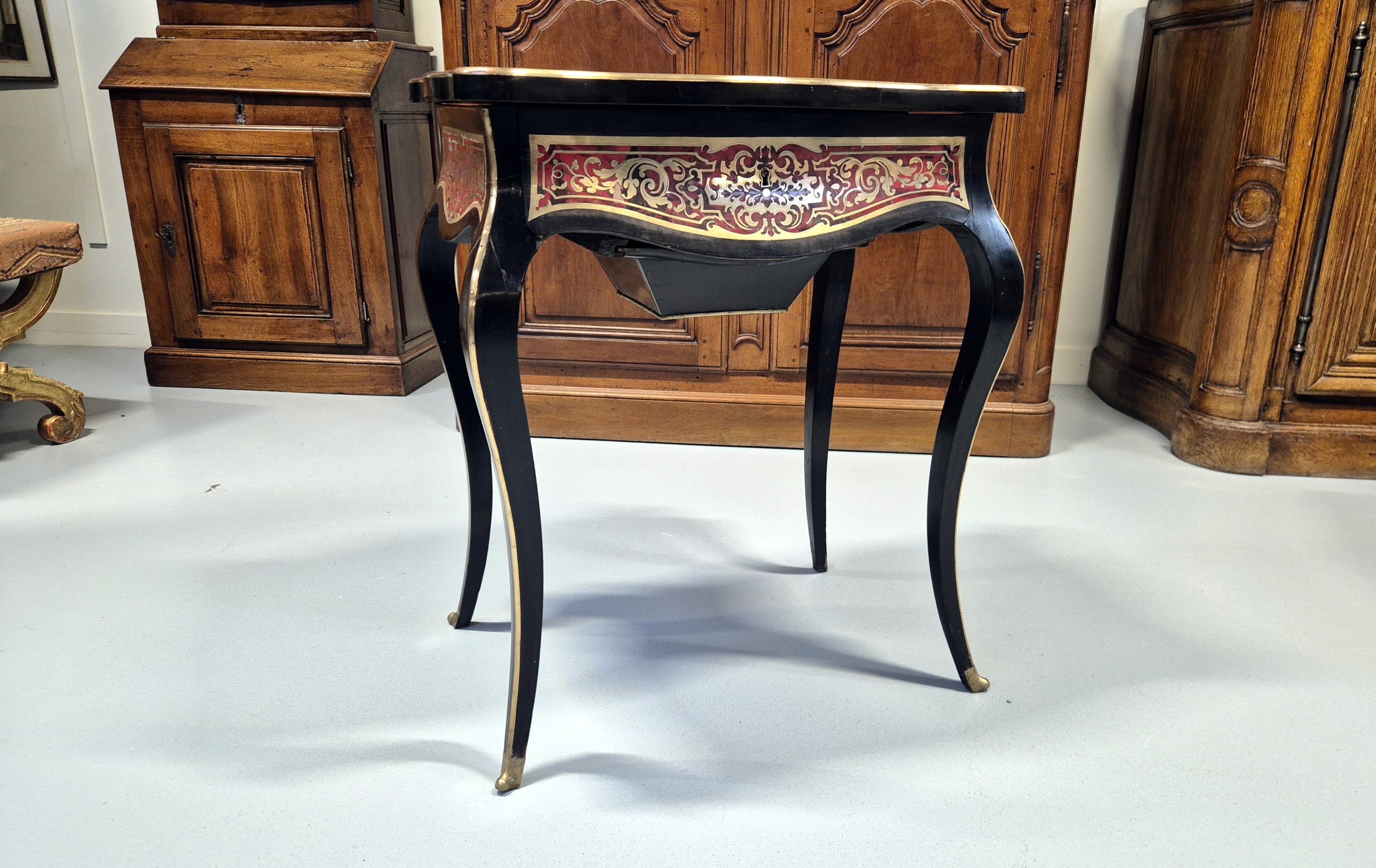 Marqueterie Boulle de laiton et écaille sur fond de bois noirci.