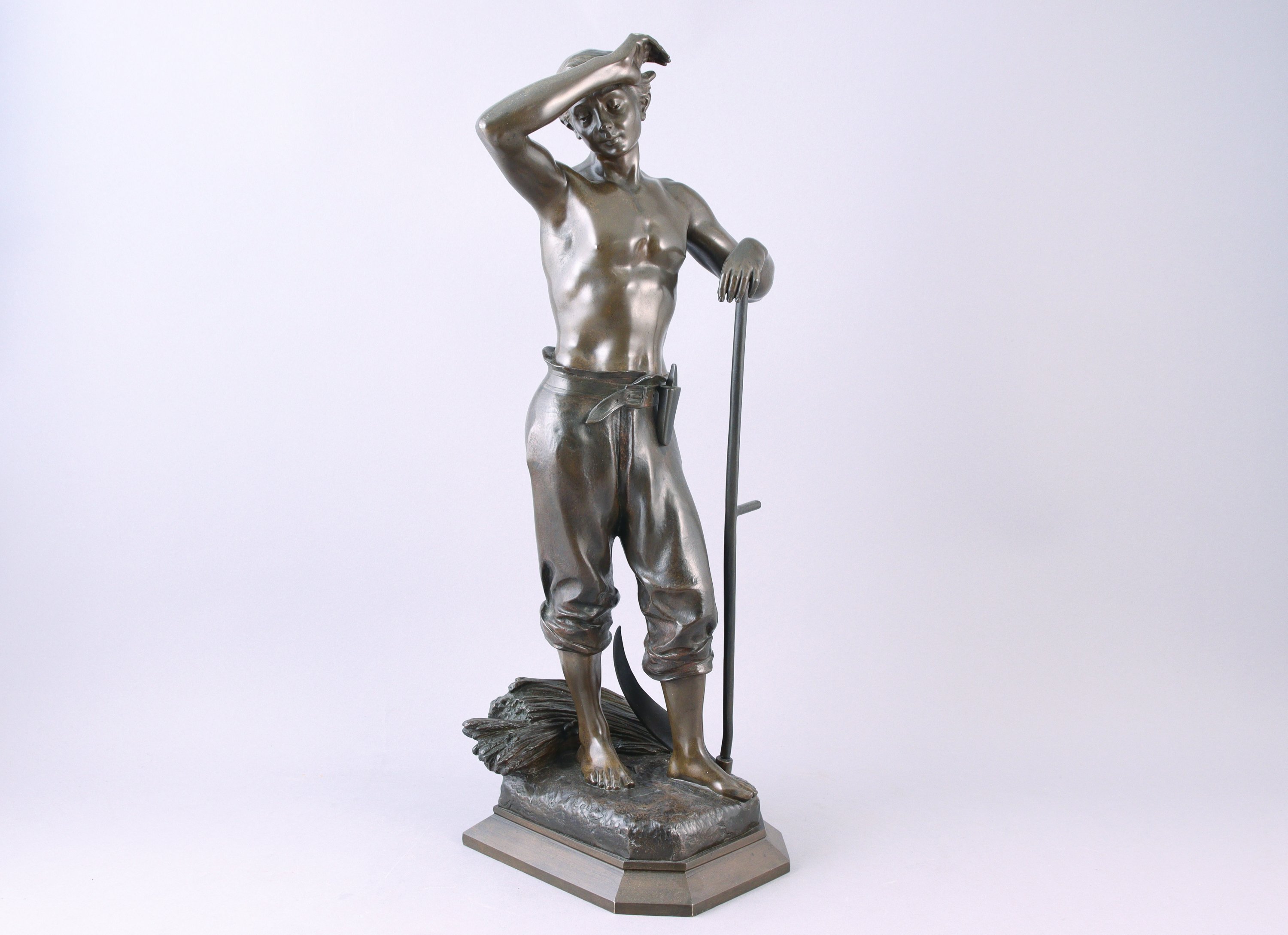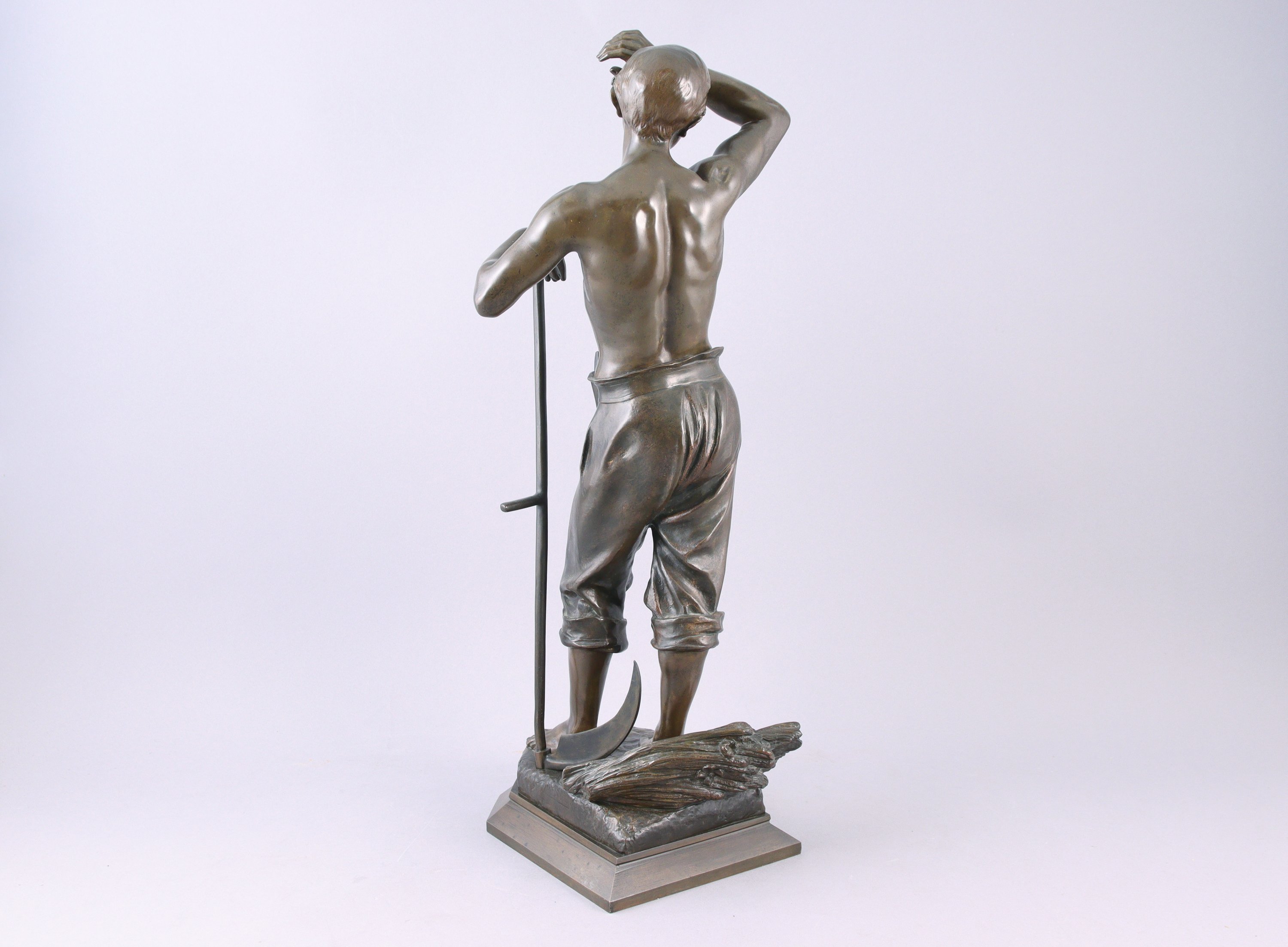 Elève d'Alexandre Falguière, Julien Caussé est issu d'une famille de sculpteurs. Fils d'Auguste-Marie Caussé (1834-1907) et frère du sculpteur Auguste Caussé (1870-1924), Julien commence à exposer au Salon des Artistes Français en 1888. Son oeuvre est plurielle. Il traite autant les nus féminins que les travailleurs de la IIIe République, à l'instar de ce "Moissonneur".