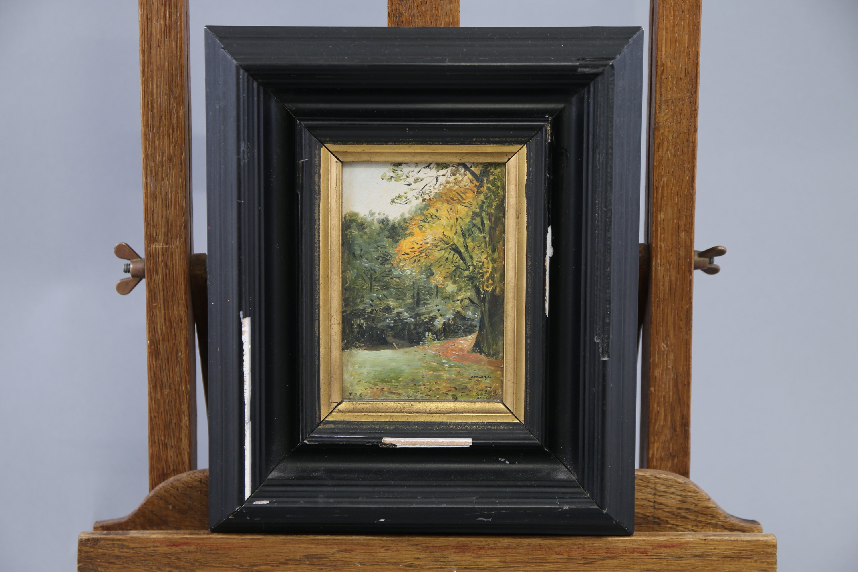 Cadre en bois et stuc noirci, 23 x 19,5 cm (accidents et manques).