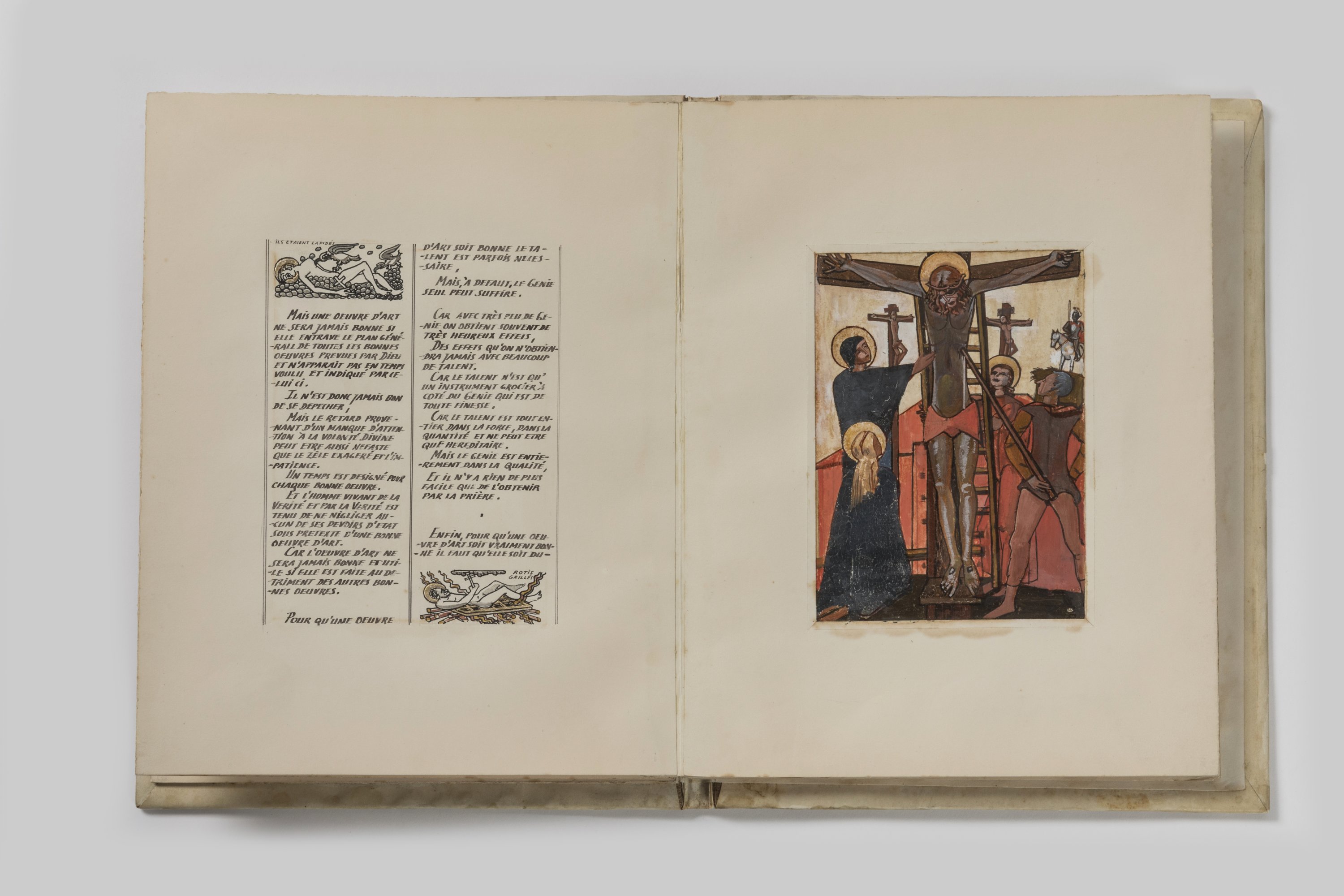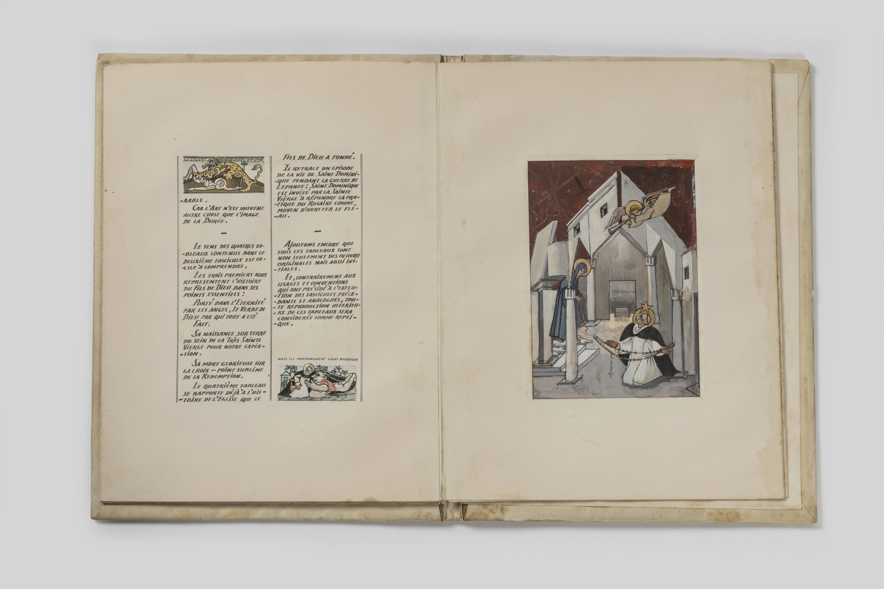 Outre les 8 vignettes in-t., 4 peintures pleine page h.t.: Le Christ en Majesté (Le Verbe) ; La Nativité (Scène de la crèche) ; La Crucifixion (Le Calvaire) ; Saint Dominique (L'épisode de Lépante et le Rosaire).