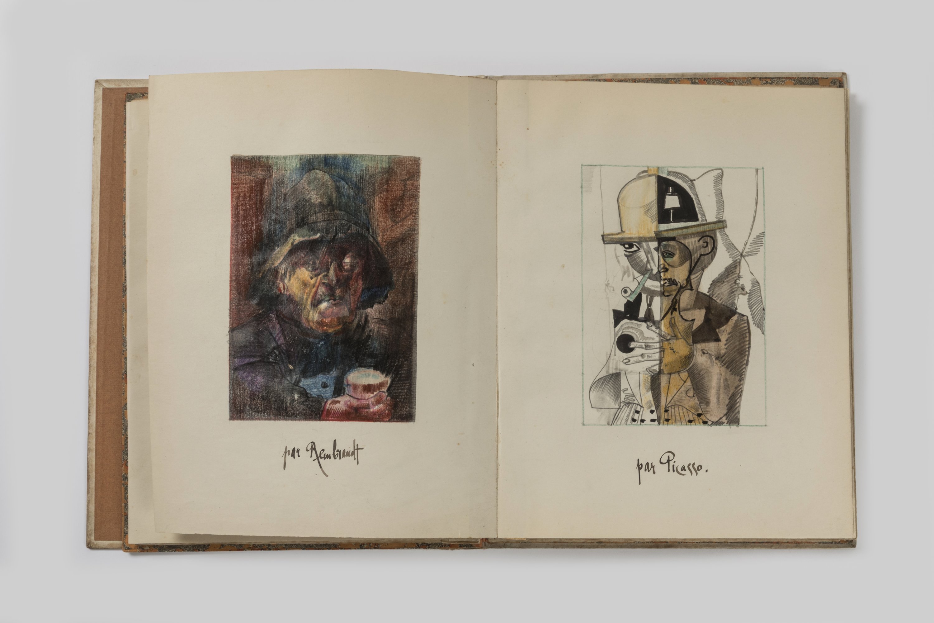 Manuscrit original unique illustré de 21 dessins en pleine page, technique mixte: pastel, crayon gras, encre de Chine, aquarelle, vernis protecteur.