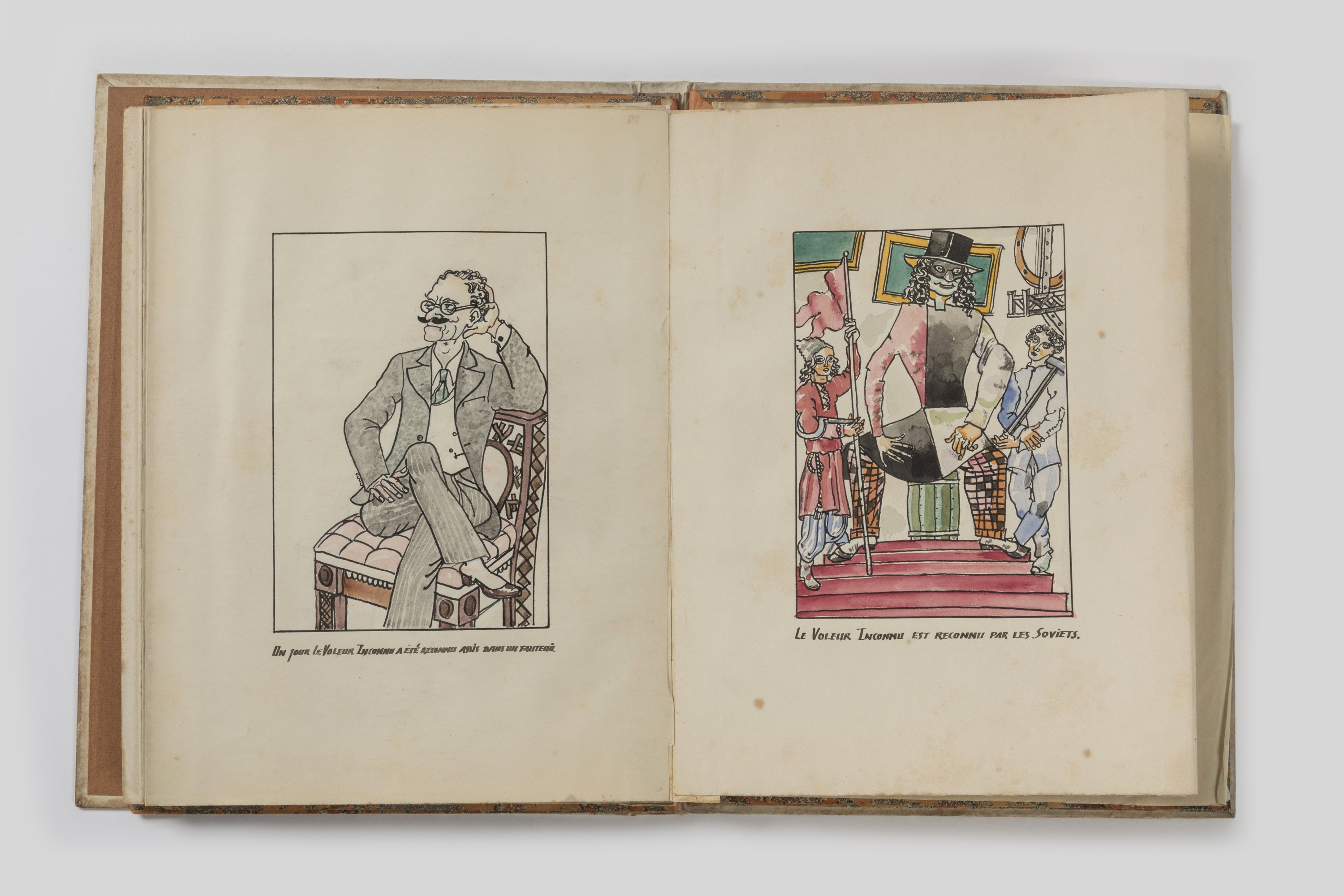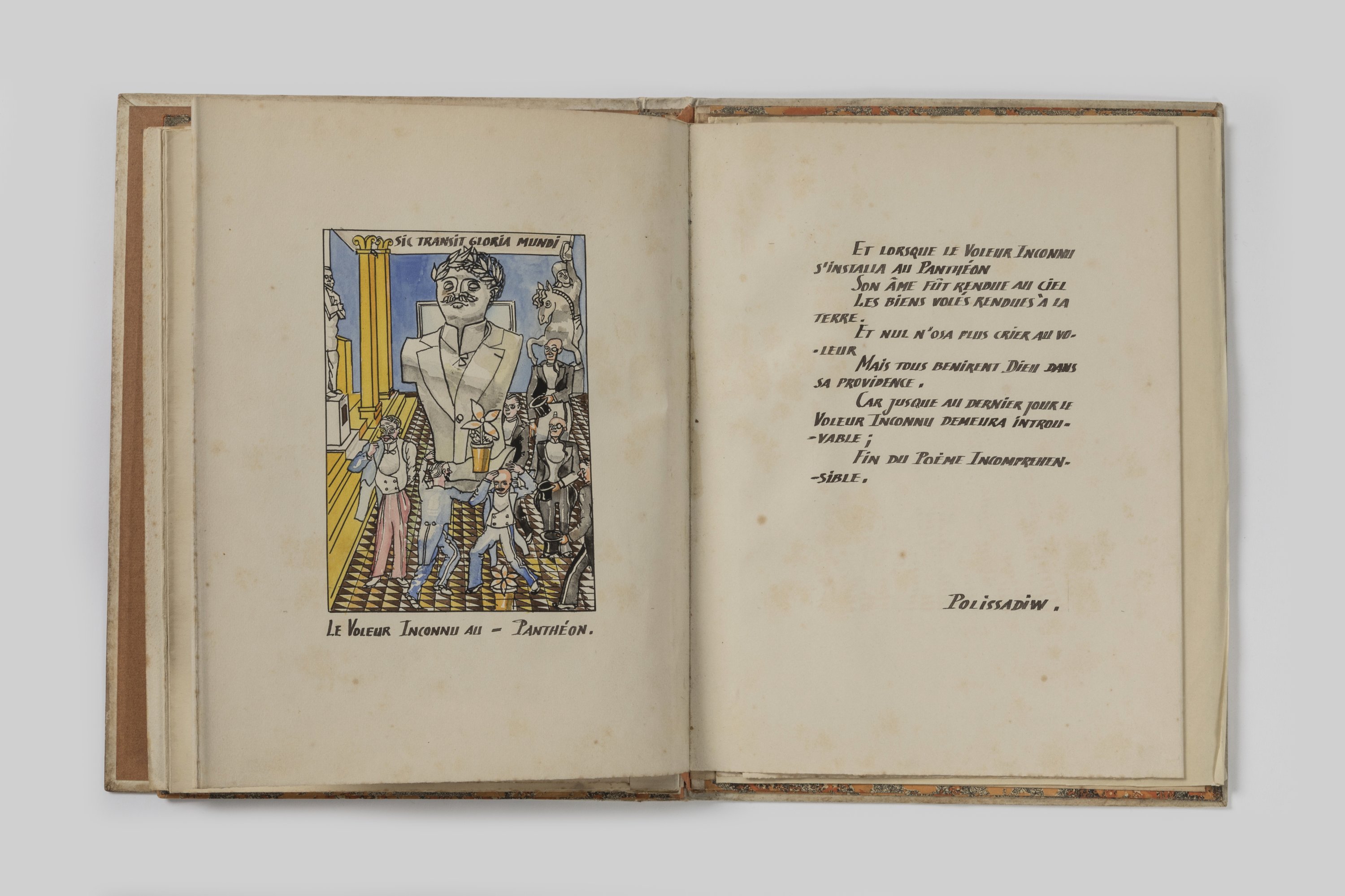 Le manuscrit se présente comme une épopée satirique et absurde divisée en plusieurs séquences: le prologue qui introduit les personnages (brigadier, Eléphantine) ; une galerie des styles ou pastiches où le "Voleur" est représenté selon les codes esthétiques de la période Art Déco du début des années 30 (cubisme, modernisme, réalisme, expressionnisme) inspiré par les artistes peintres contemporains (Picasso, Foujita, Modigliani) ; l’enquête illustrée d’une série de scènes satiriques et caricaturales, une critique acerbe des institutions (armée, justice, Etat) et des courants sociétaux de l’époque ; l’épilogue marquant l'entrée de l'absurde dans l'histoire, c’est-à-dire le voleur inconnu installé au Panthéon.