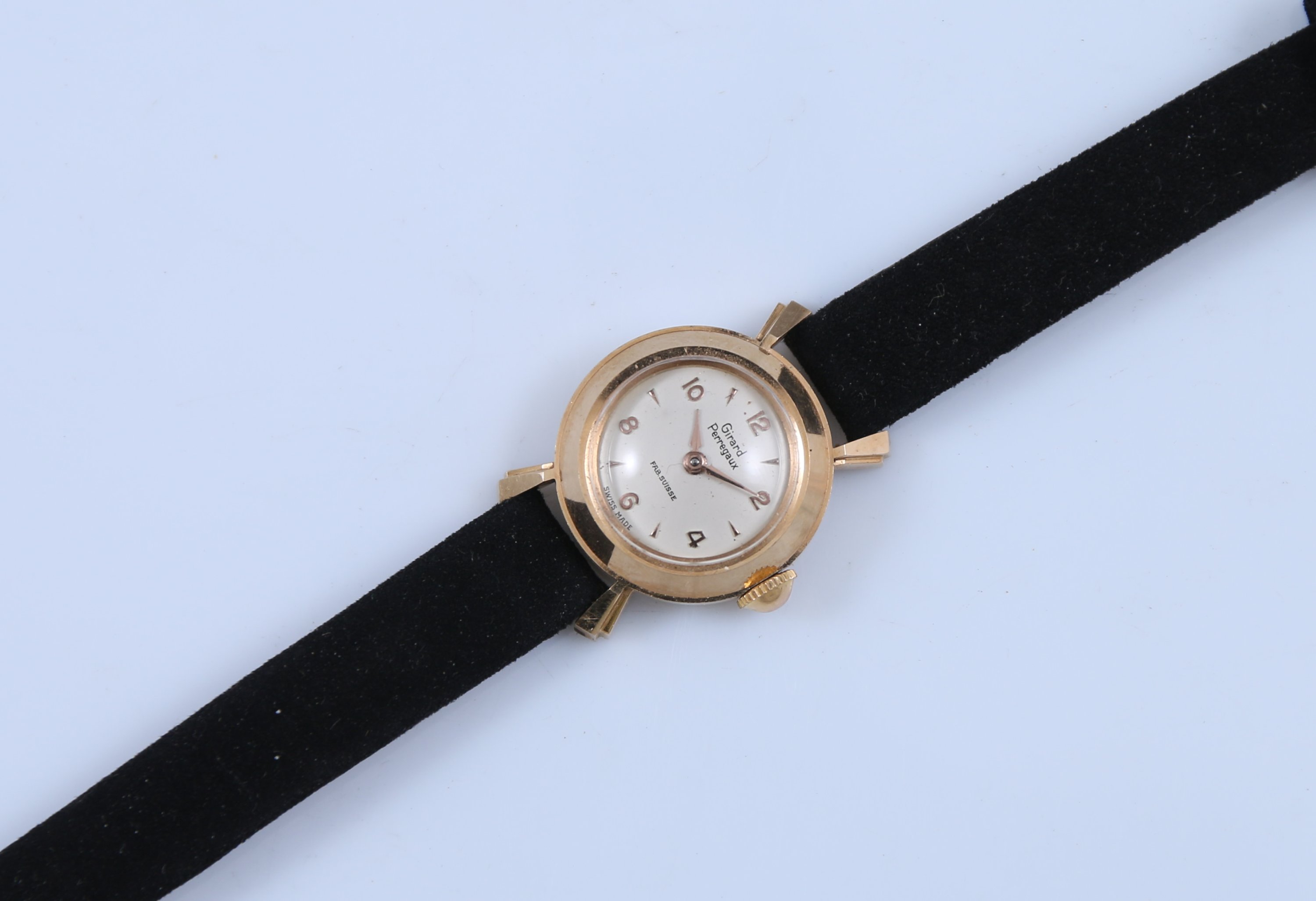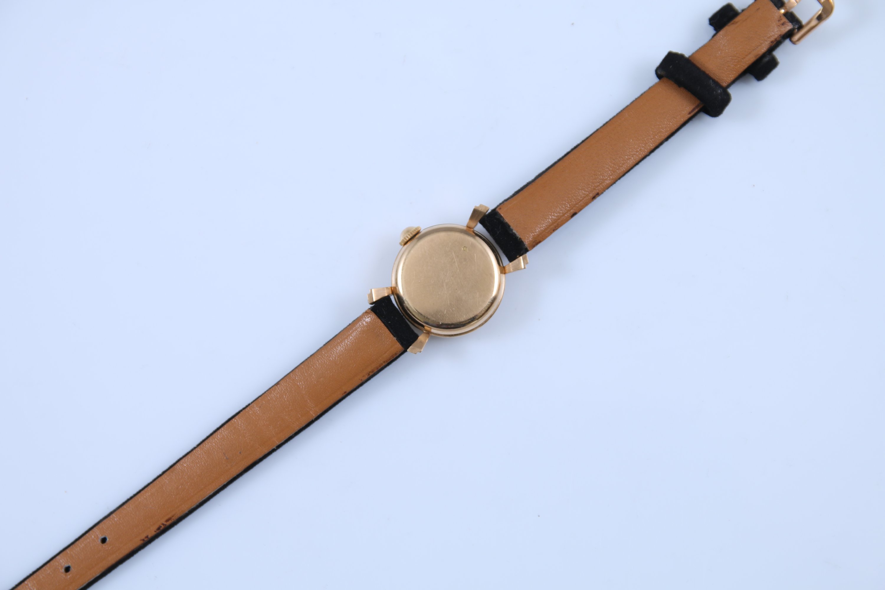 Le cadran fond champagne indiquant les heures en chiffres arabes et pointillets. Bracelet en cuir.