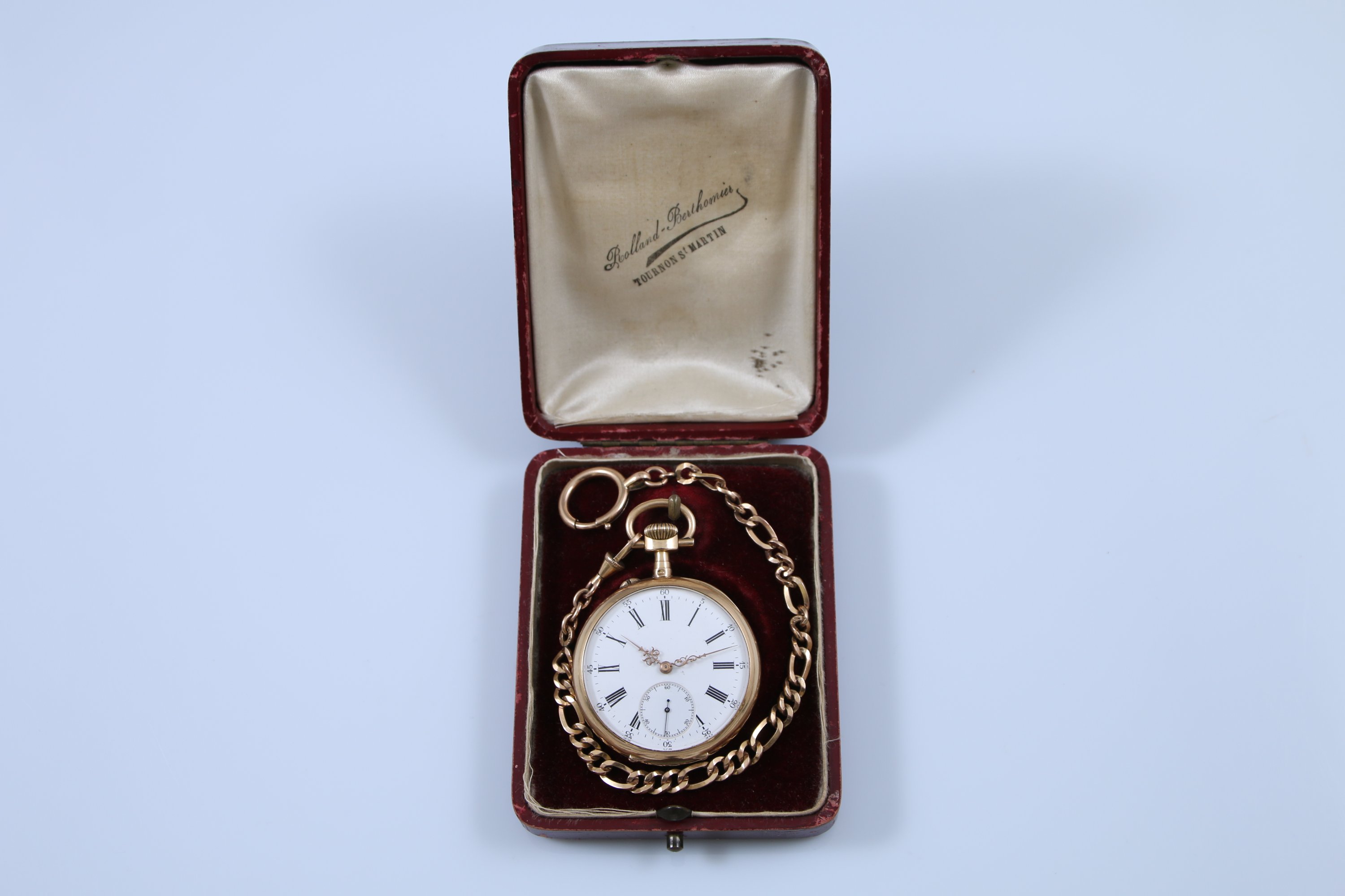 Cache-poussière en or n°46641 gravé: "Chronomètre Ancre Ligne Droite Spiralage Breguet Balancier Compensé 20 Rubis."