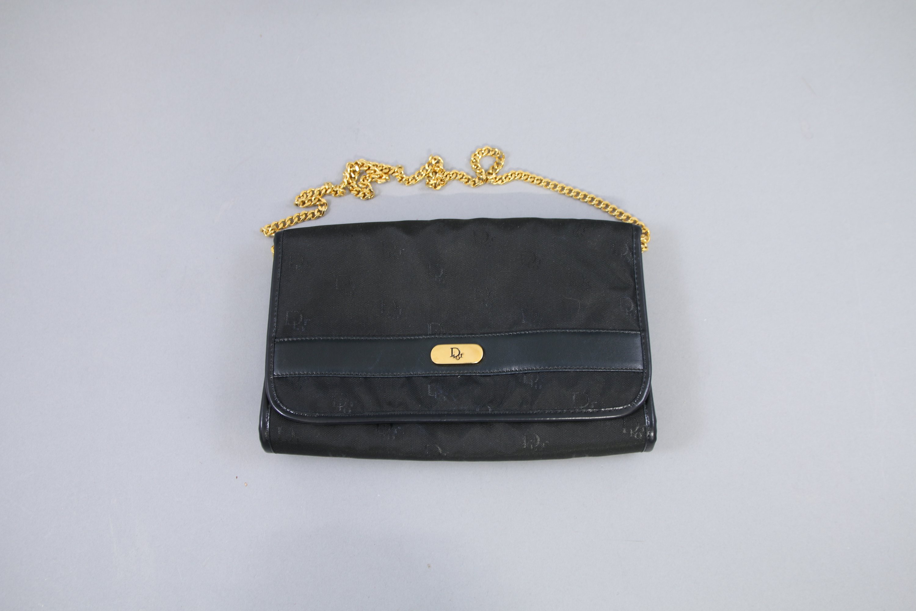 Les intérieurs marqués "Christian Dior / Paris". Le sac à une bandoulière en métal doré.