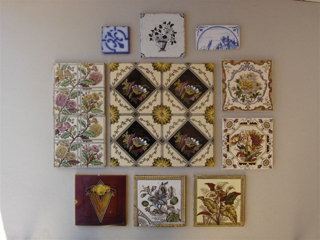 Joint : 2 carreaux et fragment de carreau en faïence de grand feu (accdt).