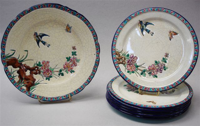 SERVICE à DESSERT, 7 pièces, comprenant 1 plat et 6 assiettes.