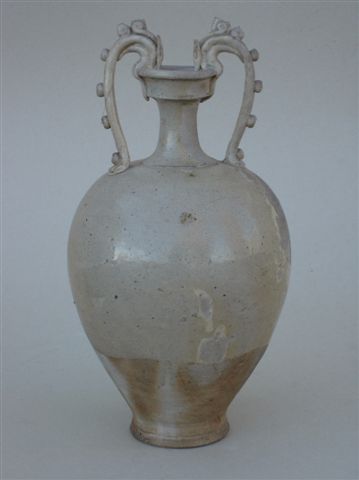 URNE de forme balustre en terre cuite émaillée beige, le col orné de deux anses en forme de dragon.