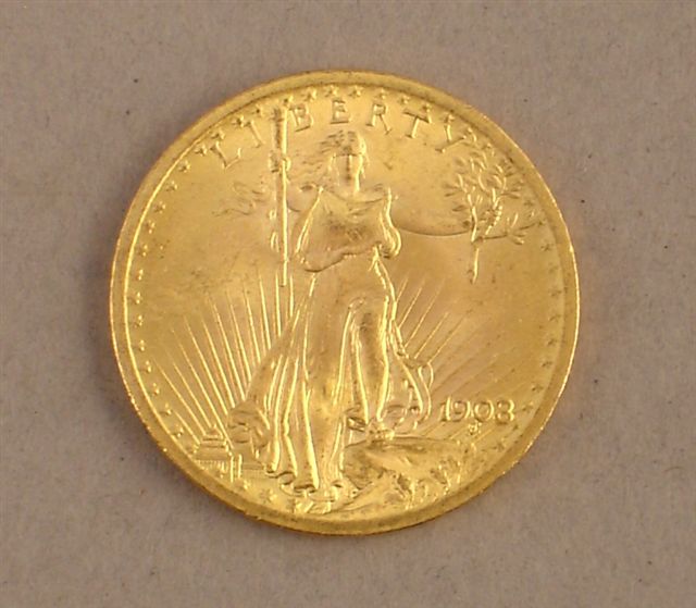 ÉTATS UNIS : lot de 6 pièces 20 DOLLARS or , Liberty debout, 1908.