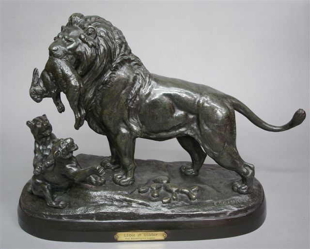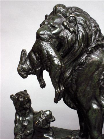 Le Premier Gibier. Bronze patine verte.