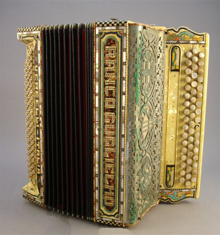 ACCORDÉON de marque Ranco Guglielmo Vercelli-Italia. Décor floral polychrome. Étui en cuir. (manques de nacre).
