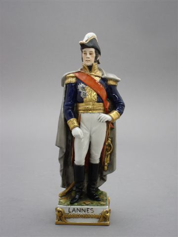 STATUETTE en porcelaine à décor polychrome et or représentant Jean LANNES (1769-1809) Maréchal d'Empire.