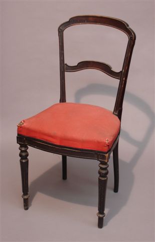CHAISE en bois noirci. Pieds antèrieurs tournés à pans.