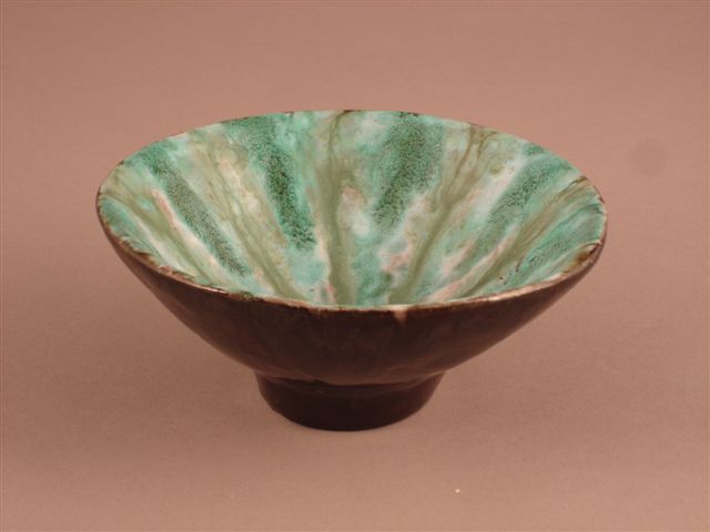 COUPE en céramique. Couverte verte à l'intérieur, noire à l'extérieur.