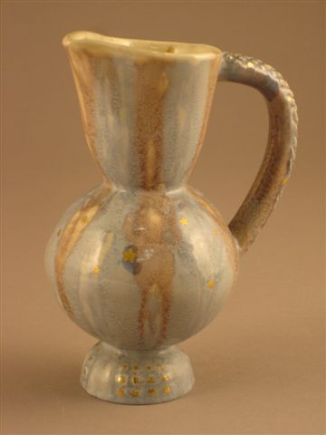 VERSEUSE à large col en céramique. Couverte bleue et beige agrémentée d'étoiles dorées. Signée au revers.