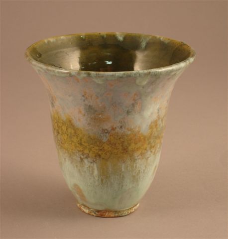 VASE à grand col en céramique. Couverte bleue et ocre...