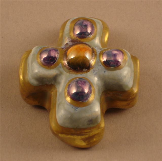 PENDENTIF en céramique, en forme de croix, ornée de cabochons.