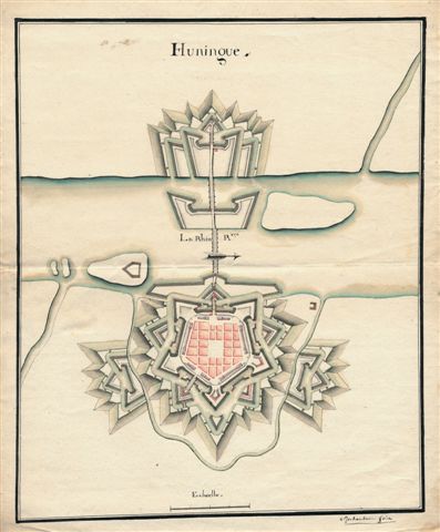 Huningue. Mi-XVIIIe siècle. 30,5 x 37 cm. Signé en bas à droite : « Rochambeau fecit ».