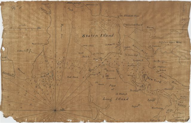 Plan de Staten-Island. 54 x 35 cm. Plan manuscrit sur calque figurant la baie de New-York. Joint un plan en double.