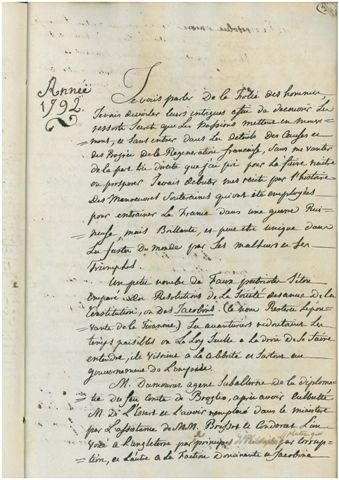 Je vais parler de la folie des hommes, je vais dévoiler leurs intrigues afin de découvrir les ressorts secrets que les passions mettent en mouvement, et sans entrer dans les détails des causes et des progrès de la régénération française, sans me vanter de la part très directe que j'ai pris pour la faire naître ou prospérer, je vais débuter mes récits par l'histoire des manuvres souterraines qui ont été employées pour entraîner la France dans la guerre ruineuse, mais brillante, et peut-être unique dans les fastes du monde par ses malheurs et ses triomphes