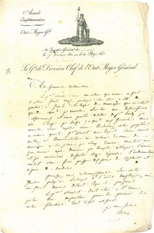 Au Q.G. au Cap 18 pluviôse (7 février). J'ai reçu mon cher général le rapport que vous m'avez envoyé sur votre brillante expédition du fort Dauphin ; je connaissais votre manière d'opérer à la guerre et je m'y attendais. Suivant vos désirs le capitaine Magon est contre-amiral. Je nomme chef d'escadron votre aide de camp, le citoyen Acier