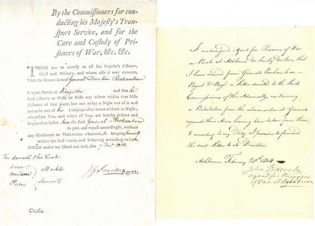 John PIDCOK, agent des prisonniers de guerre à Ashbourn. 2 L.S. au général Rochambeau, Ashbourn 20 et 25 février 1804 ; 2 pages in-4.