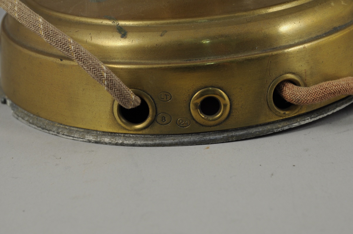 GRAMMONT. Téléphone mobile en laiton et bakélite à colonne cannelée avec combiné et écouteur. Le combiné et l'écouteur portent la marque "EURIEULT / PARIS / Ste GRAMMONT Sr" et les numéros "6919" et "7277". Début du XXème. (traces d'argenture)