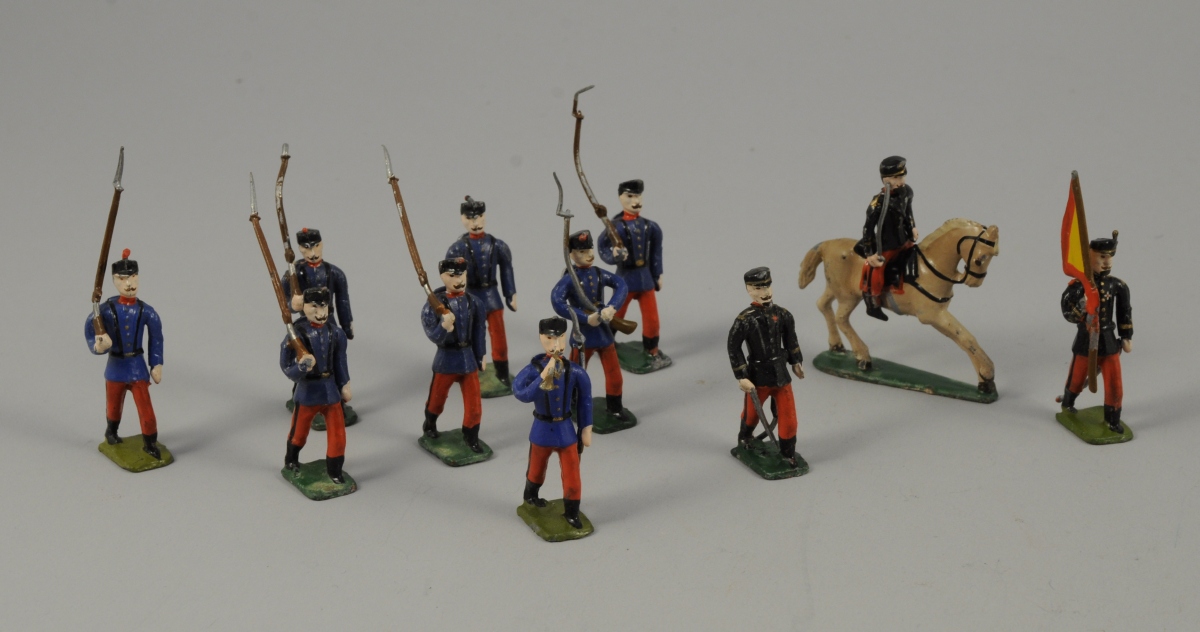 Ensemble de onze SOLDATS de plomb peint, dont un cavalier.