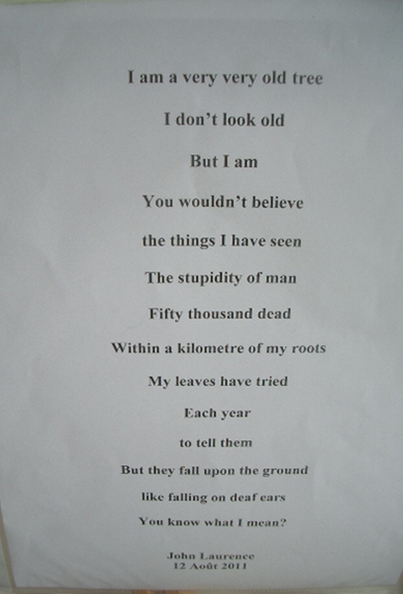 Avec deux textes également de John Laurence, en anglais et en français, qui seront au dos du tableau, également intitulés John's Tree.