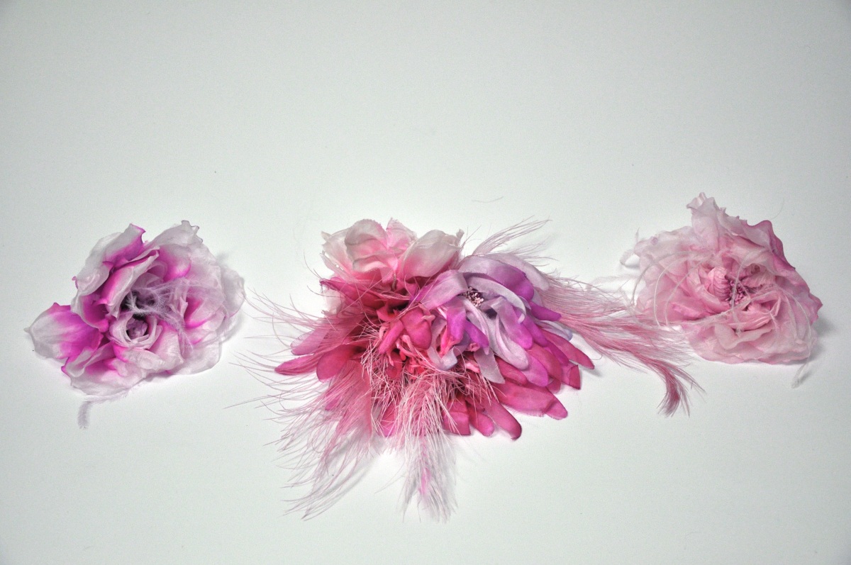 Lot de 3 broches dans les tons allant du rose pâle au rose fuchsia