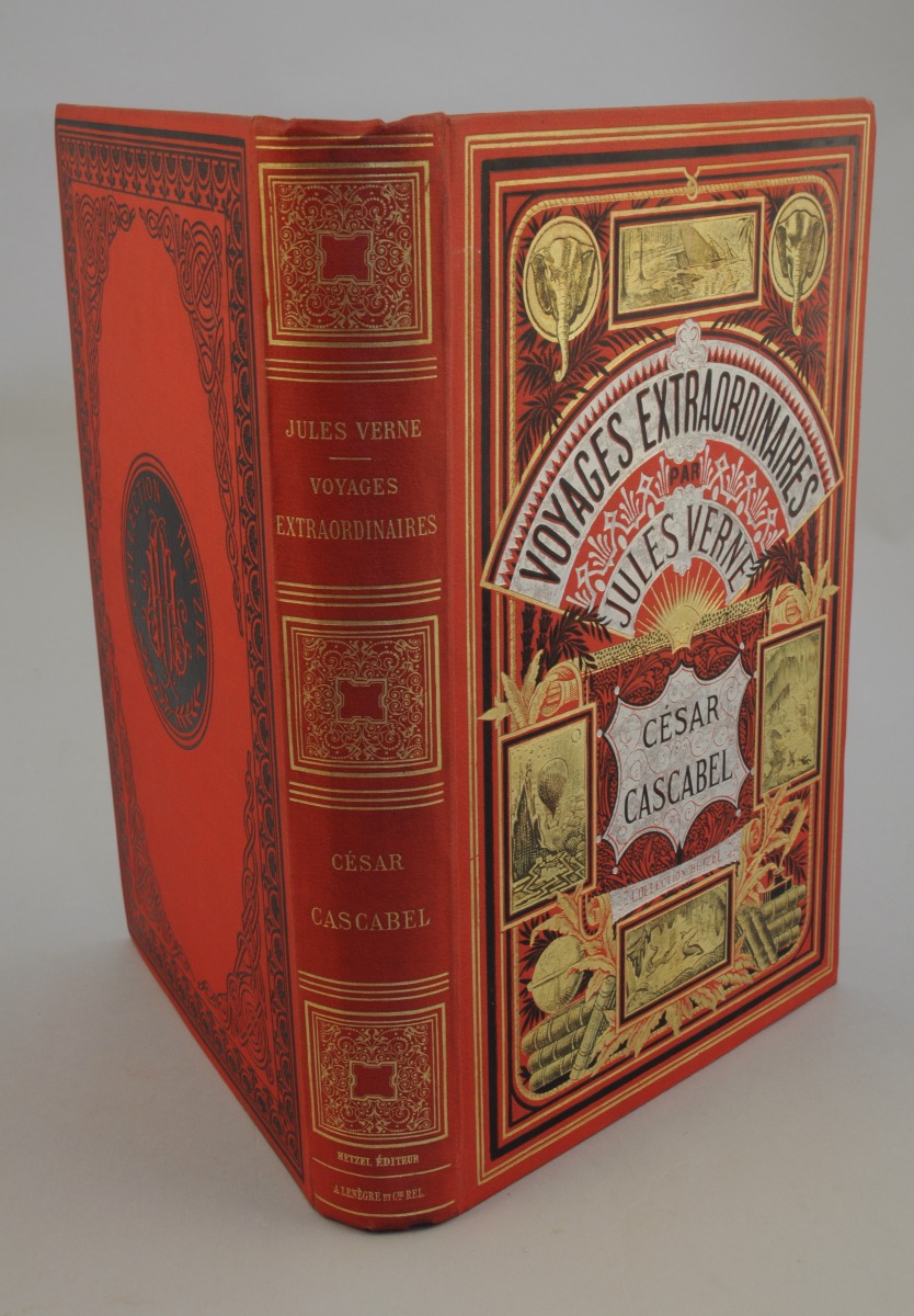 Grand in-8, percaline éditeur. Le bandeau Voyages Extraordinaires et le titre sont sur fond argenté.