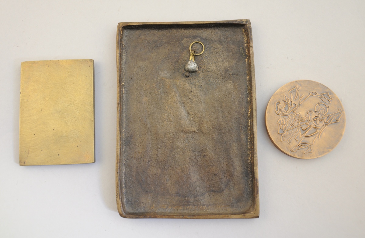 [RELIGION]. 3 médailles commémoratives dont deux non titrées marquées Debus et MD, respectivement, plus une commémorative du village de "Tavant" signée Landry.
