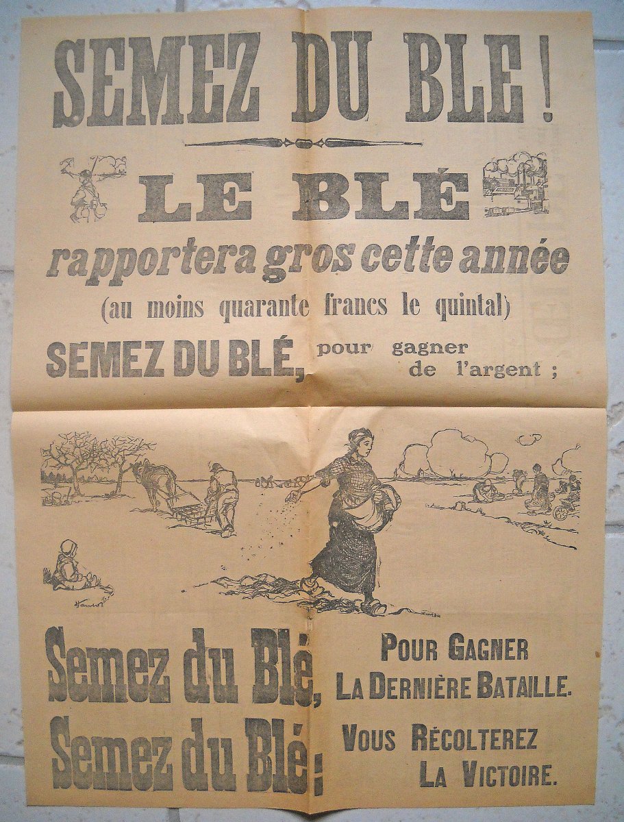" [1916] par Abel Faivre, Devambez Paris, 49 x 32 cm, trace de pli, T.B.E. - Bulletin de l'alarme, n°2, juillet 1916 et bulletin d'adhésion - "On ne passe pas 1914 - 1918 - Par deux fois j'ai tenu et vaincu sur la Marne, civil, mon frère, la sournoise offensive de la paix blanche, va t'assaillir à ton tour, comme moi, tu dois tenir et vaincre, sois fort et malin. Méfie-toi de l'hypocrisie boche." par Maurice Neumont, [1917], Union des Grandes Associations Françaises contre la propagande ennemie. Imp. Devambez, 114 x 81 cm, traces de plis, quelques manques, état moyen - " Semez du blé " extrait de " L'uvre " du vendredi 23 février 1917 - 3 affichettes : " Souvenez-vous ! Ce boche qui a tué, brûlé, pillé, ce représentant de fabrique qui vous offre ses prouits... c'est le même ! Ne l'oubliez jamais ! " [1919] par Ferdinand Gottlob, 55 x 35 cm, T.B.E. - " Fête de la Victoire, 14 Juillet 1919 ". Lithographie sur vélin, Imp Devambez, Paris. " Editée et offert par la Banque nationale de crédit ". 65 x 50 cm. Défauts en marge. B.E.