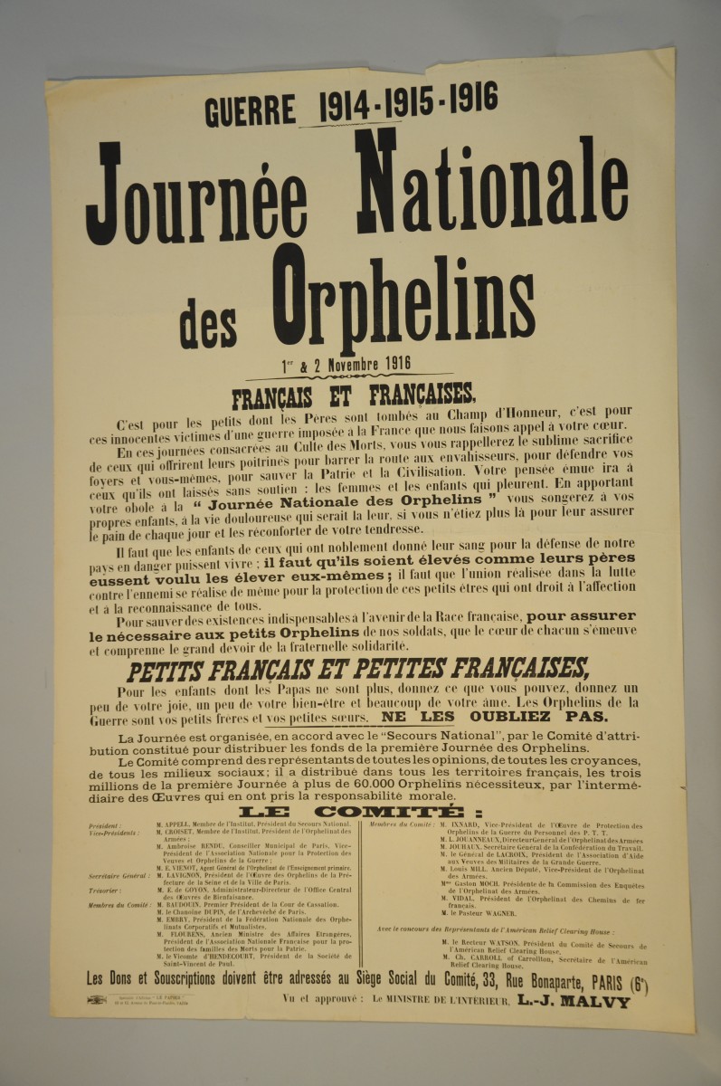 "Guerre 1914-1915-1916 - Journée Nationale des Orphelins".