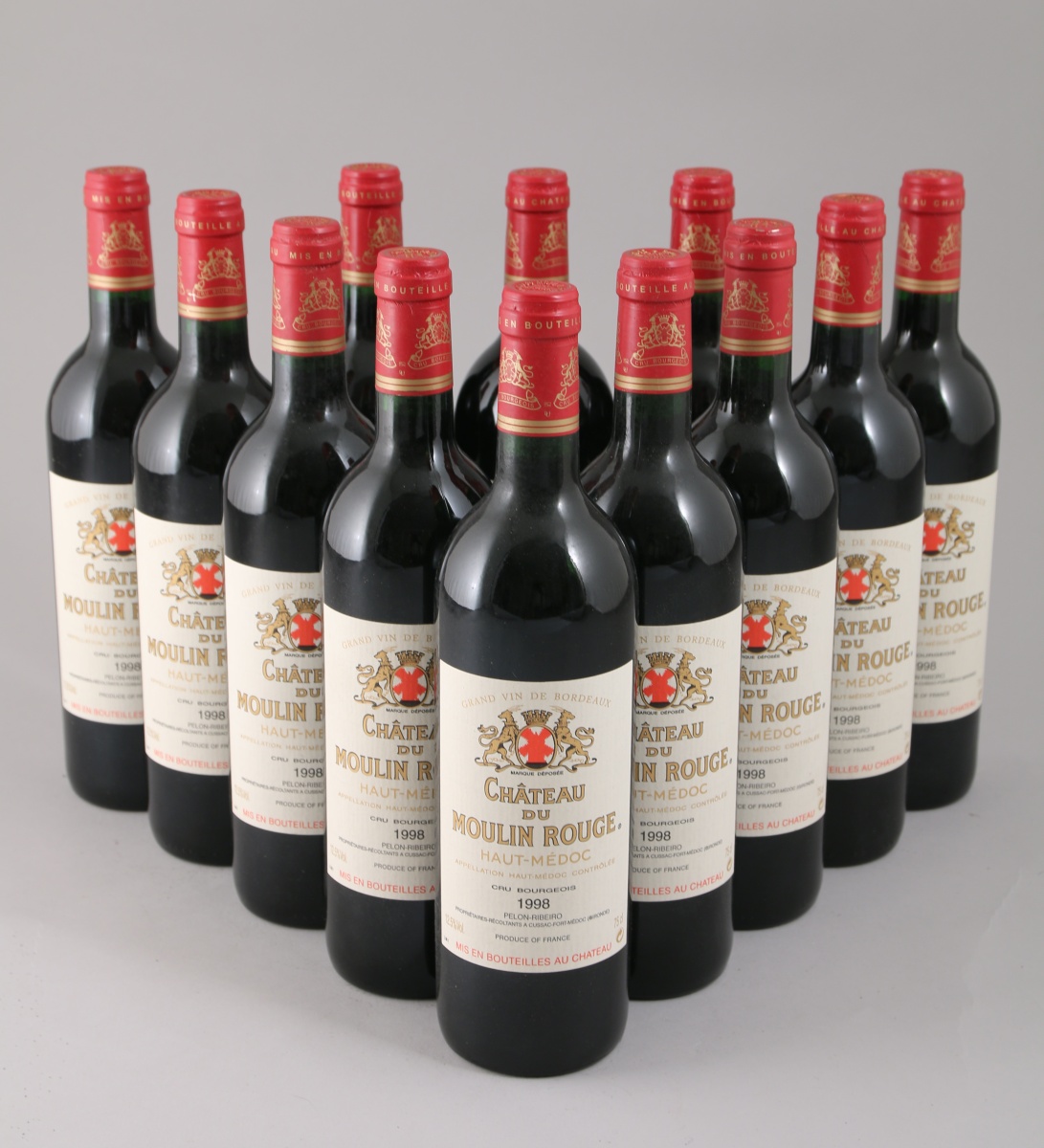 HAUT-MÉDOC. Château du Moulin Rouge, 1998. 12 bouteilles. Caisse bois (ouverte pour contrôle).