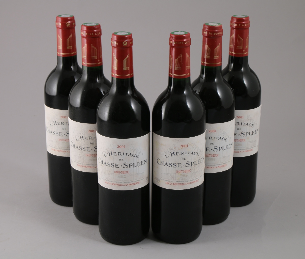 HAUT-MÉDOC. L'Hermitage de Chasse Spleen, 2001. 6 bouteilles. Caisse bois (ouverte pour contrôle).