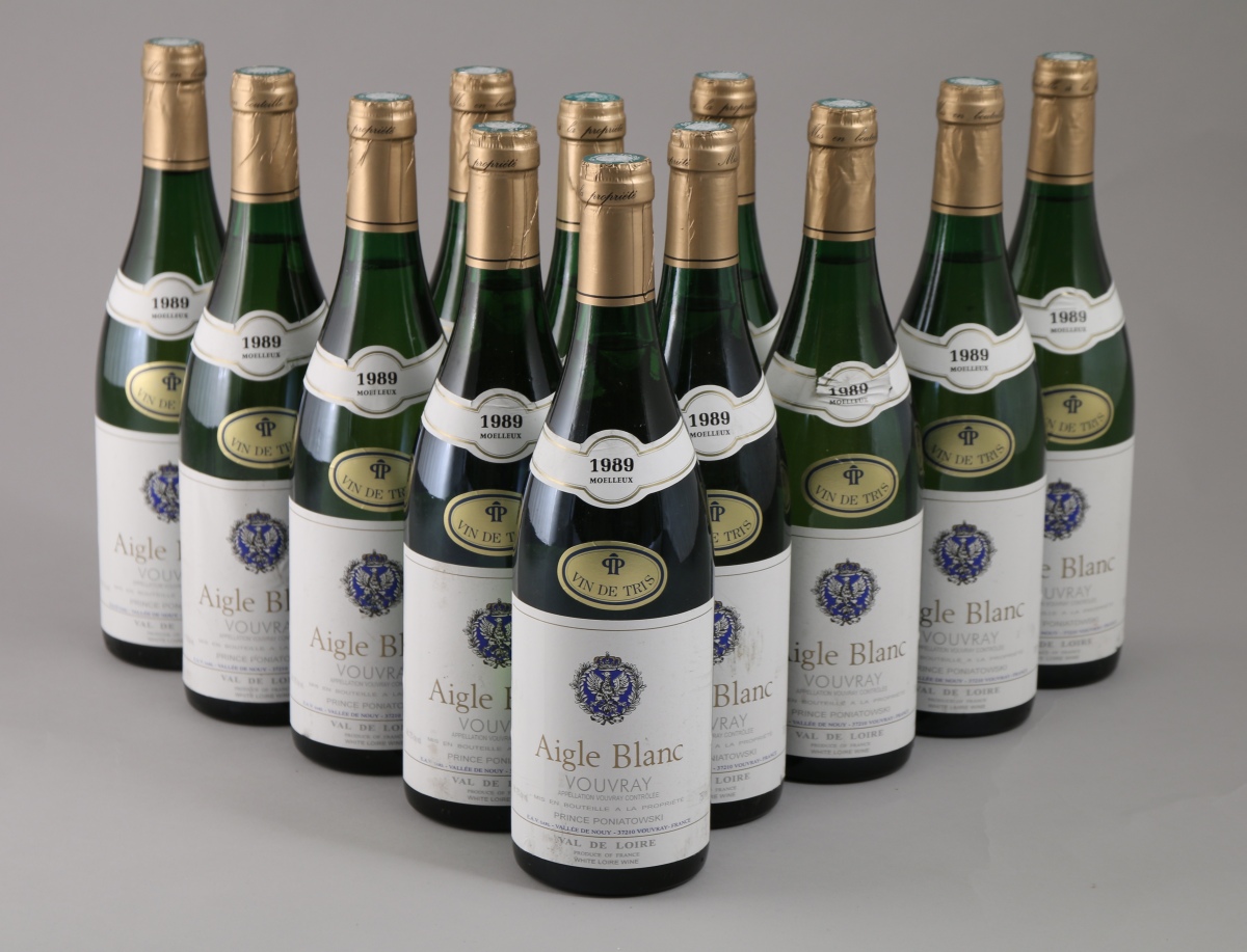 VOUVRAY. L'Aigle blanc, Poniatowski, 1989. 12 bouteilles. Moelleux.