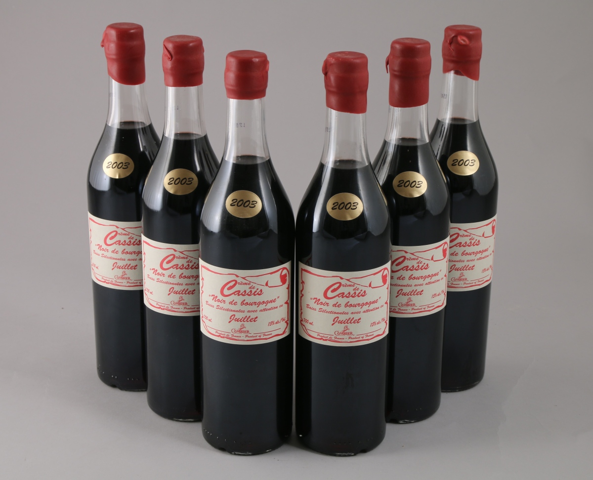 CRÈME DE CASSIS, "Noir de Bourgogne", 2003. 6 bouteilles (70cl).