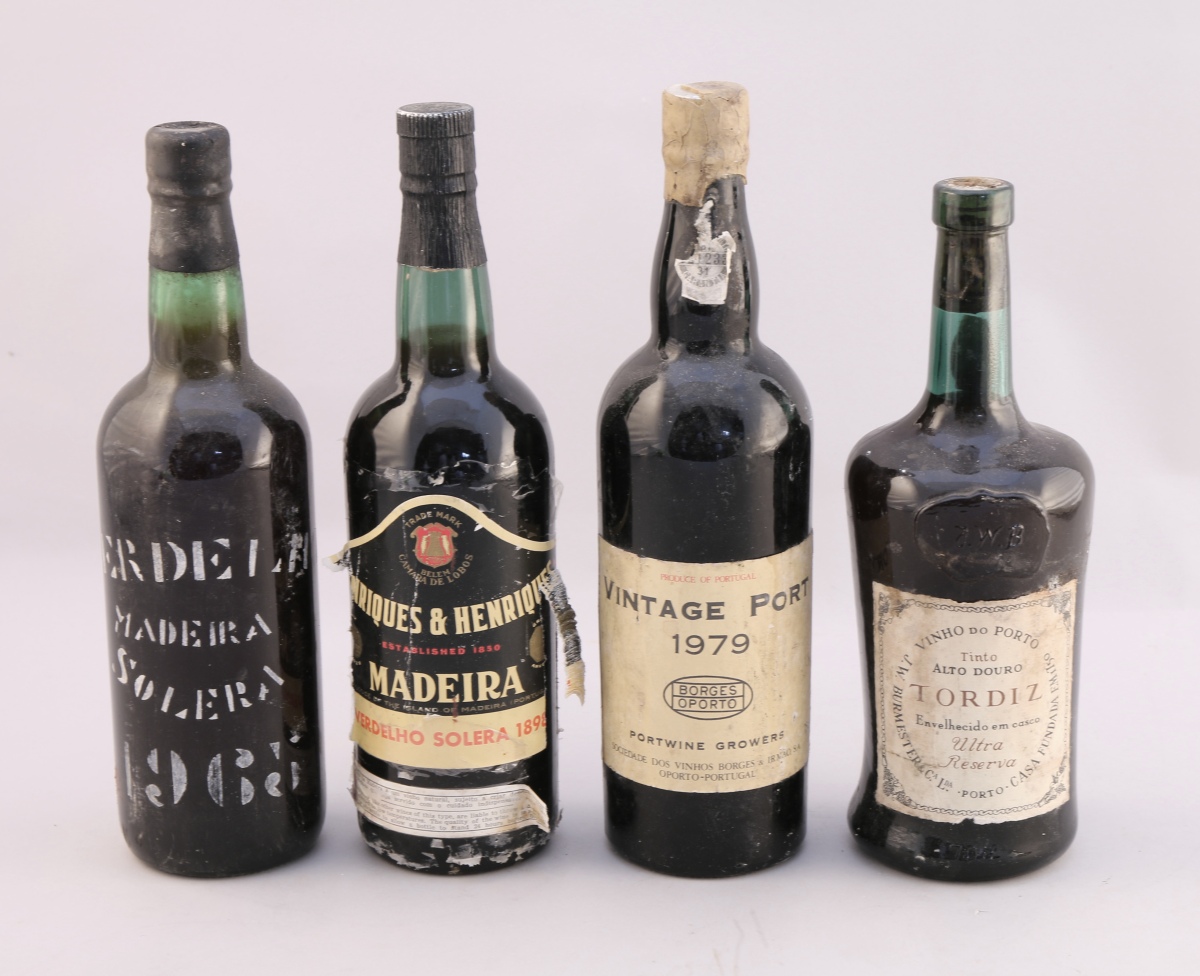 PORTO. 3 bouteilles : Verdelho Madeira Solera 1965, Henriques y Henriques Madeira, Borges Oporto Vintages port 1979.