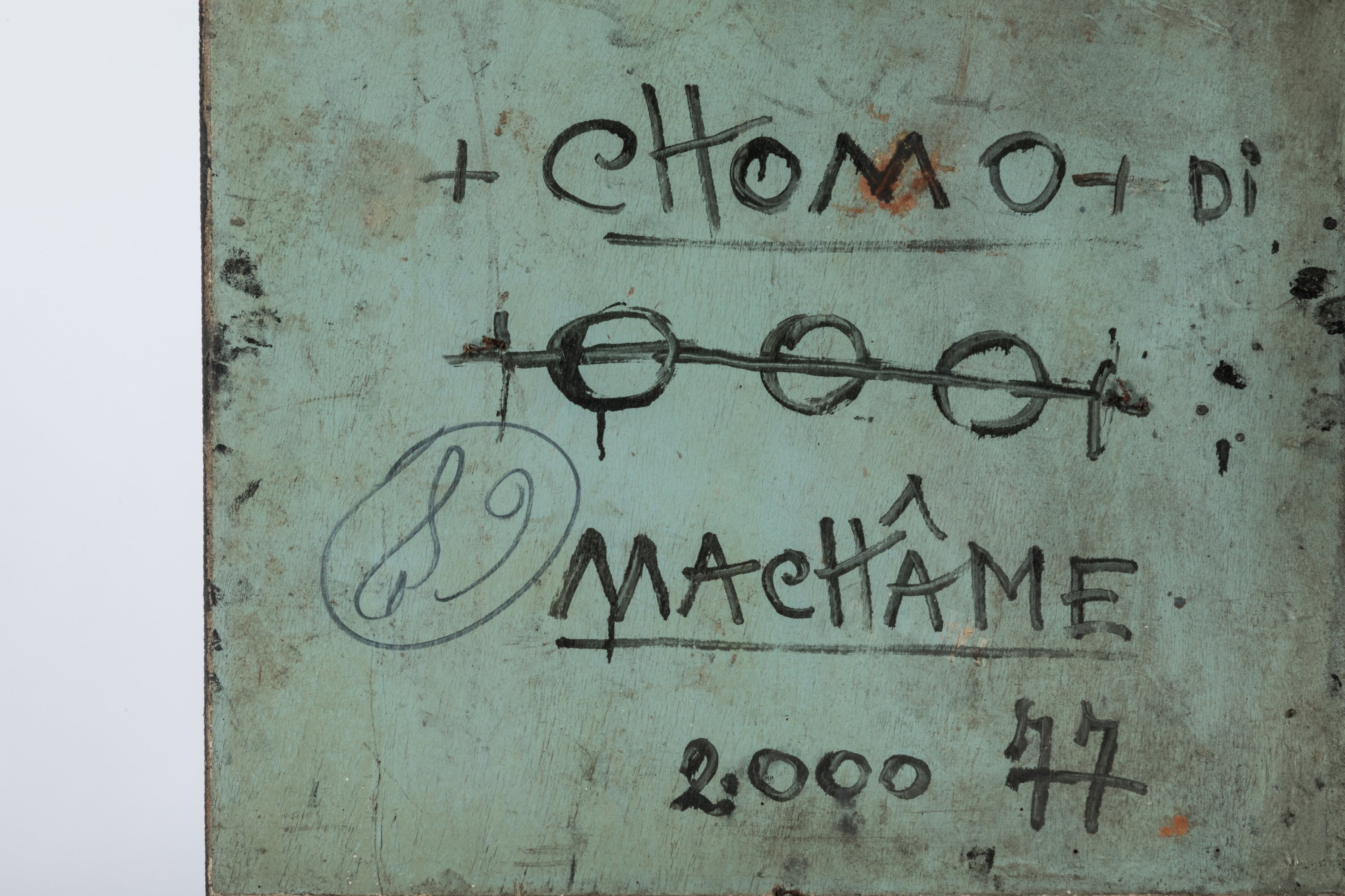 Bas-relief en grillage, plastique fondu, mâchefer, incrustation et peinture sur contreplaqué.