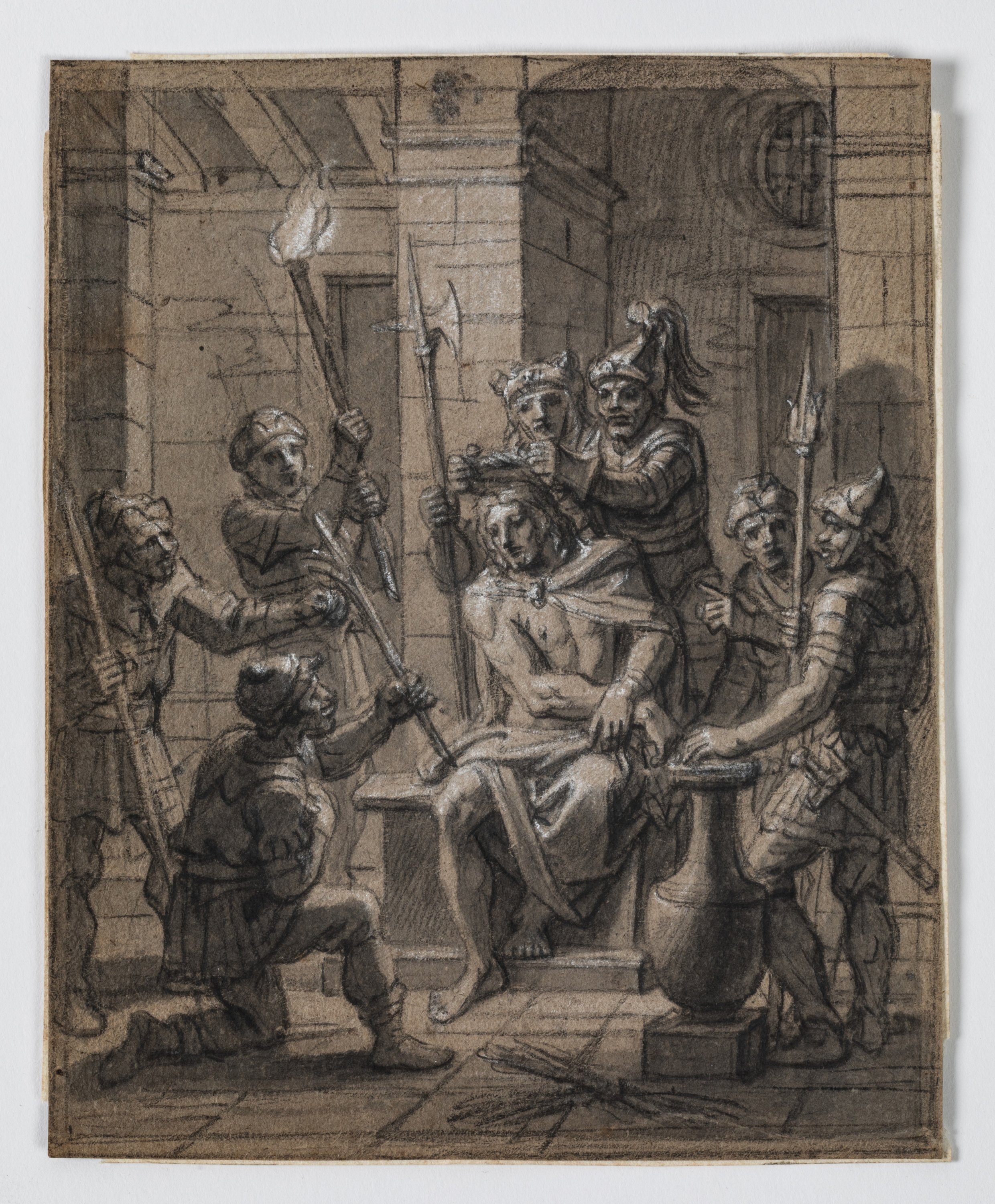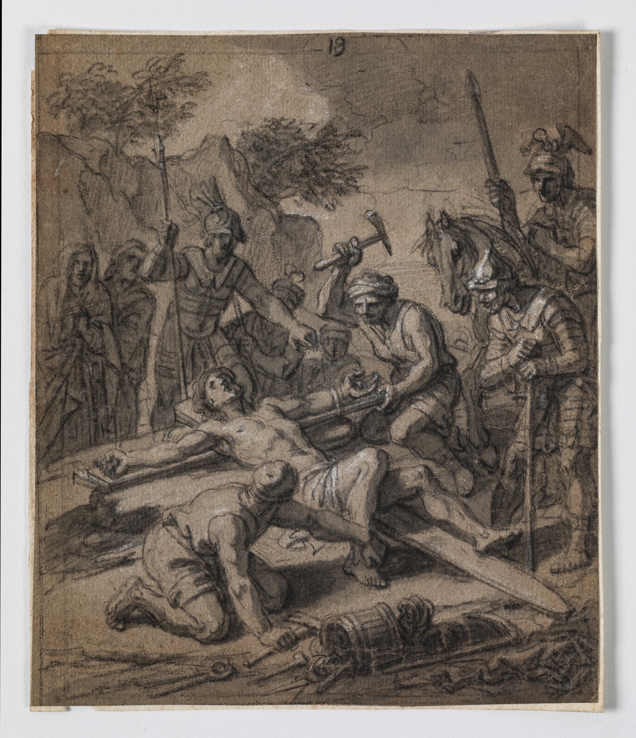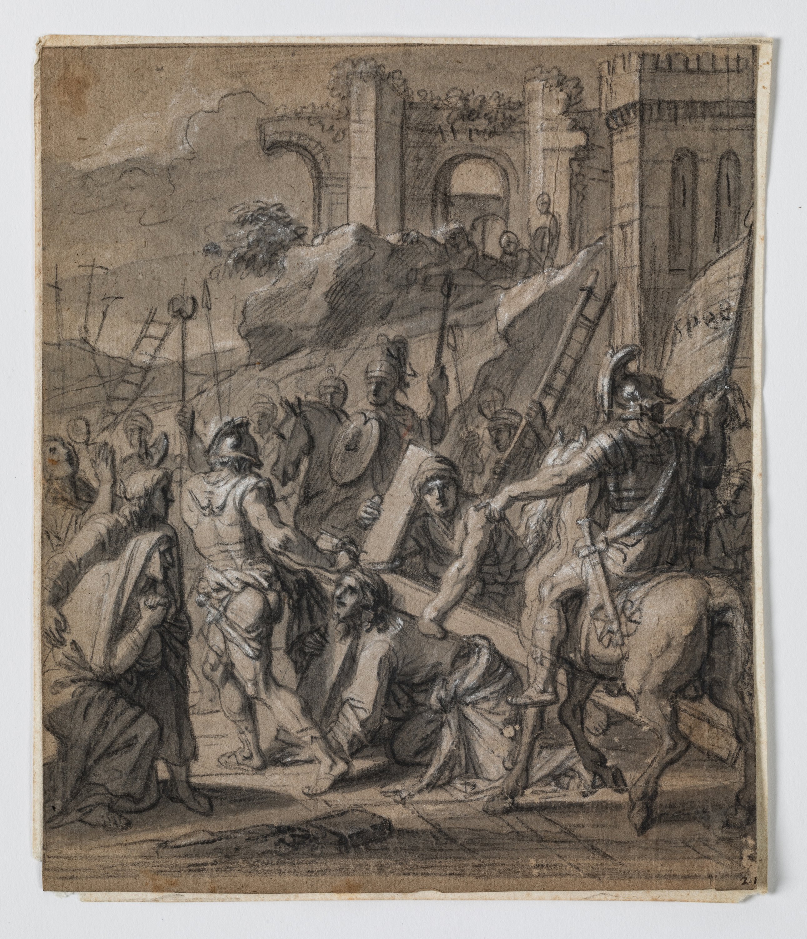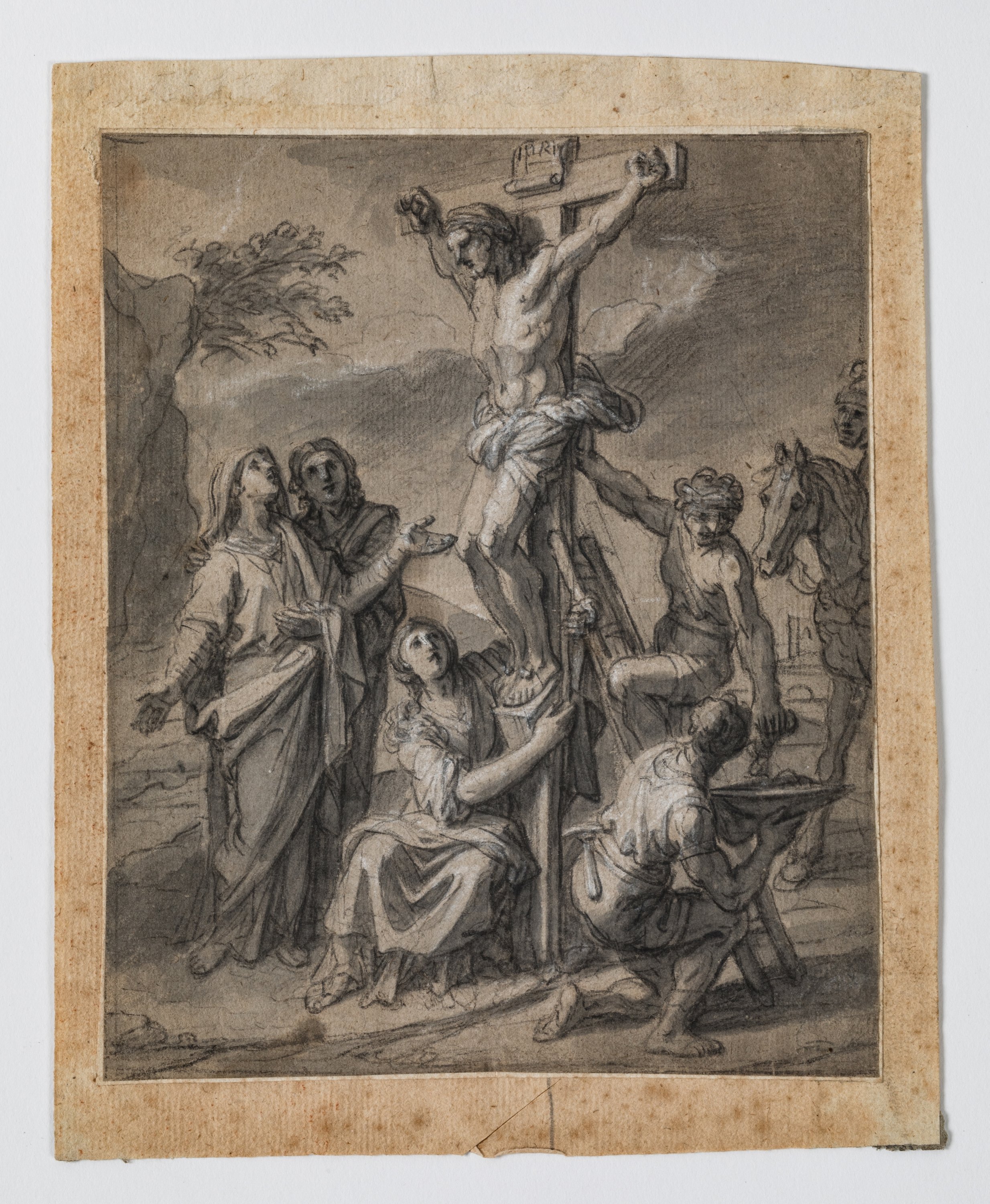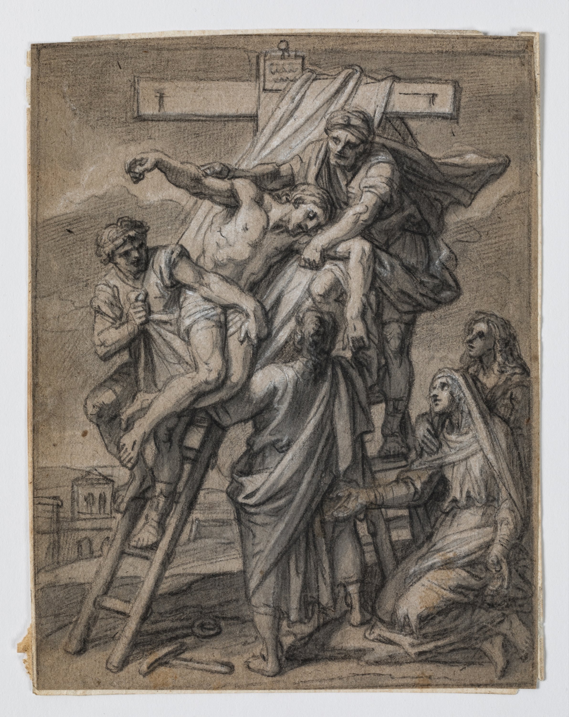 Pierre noire, lavis gris avec des rehauts de blanc.
