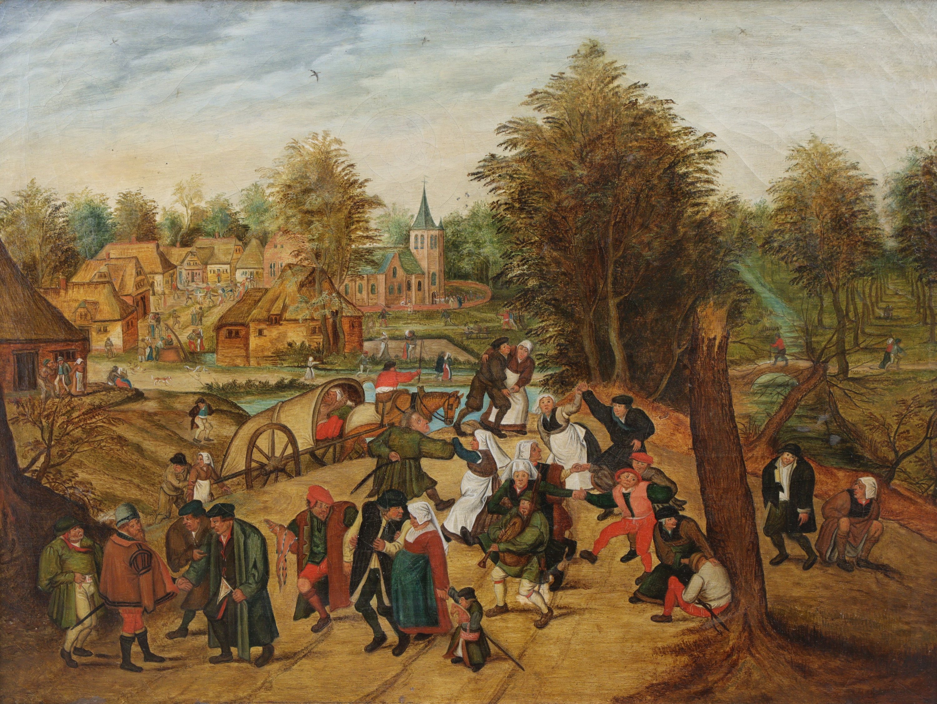 Copie ancienne du panneau "Le retour de la kermesse" réalisé par Pieter Brueghel le Jeune (Flamand, c. 1564-1636) vers 1620 et conservé aujourd'hui au Nivaagaards Malerisamling de Nivå au Danemark sous le numéro 0011NMK.