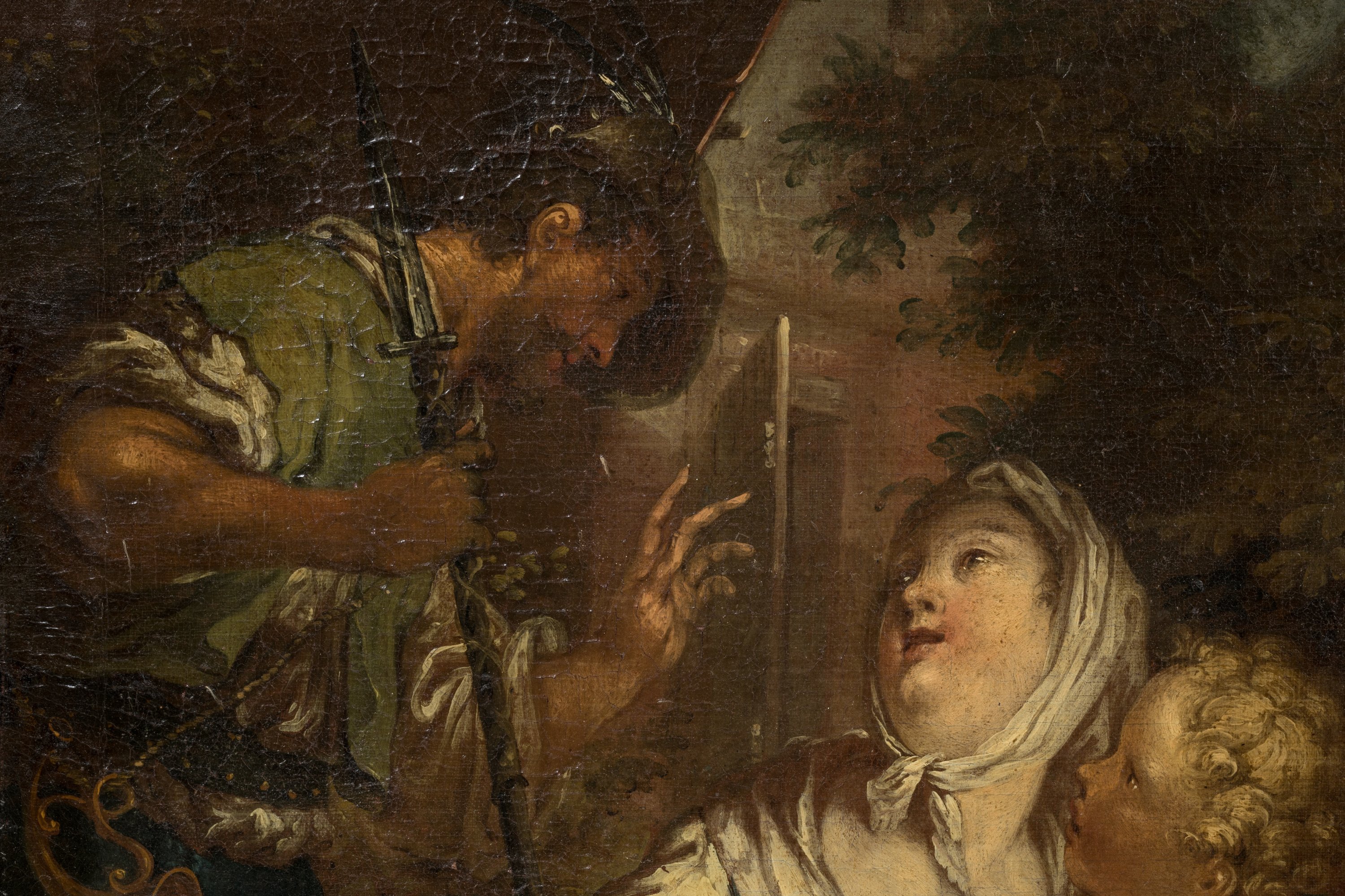 Notre composition peut être rapprochée d'un tableau conservé dans une collection privée à Munich (monographie par Josef StraBber, 1994, fig. 207) daté des années 1770-1790. On trouve de nombreuses similitudes quant à la disposition des personnages, leurs regards, ou encore l'exécution des matières. Peintre d'histoire, auteur de nombreux décors rococo d'églises bavaroises, Januarius Zick a peint aussi plusieurs scènes de genre et pastorales.